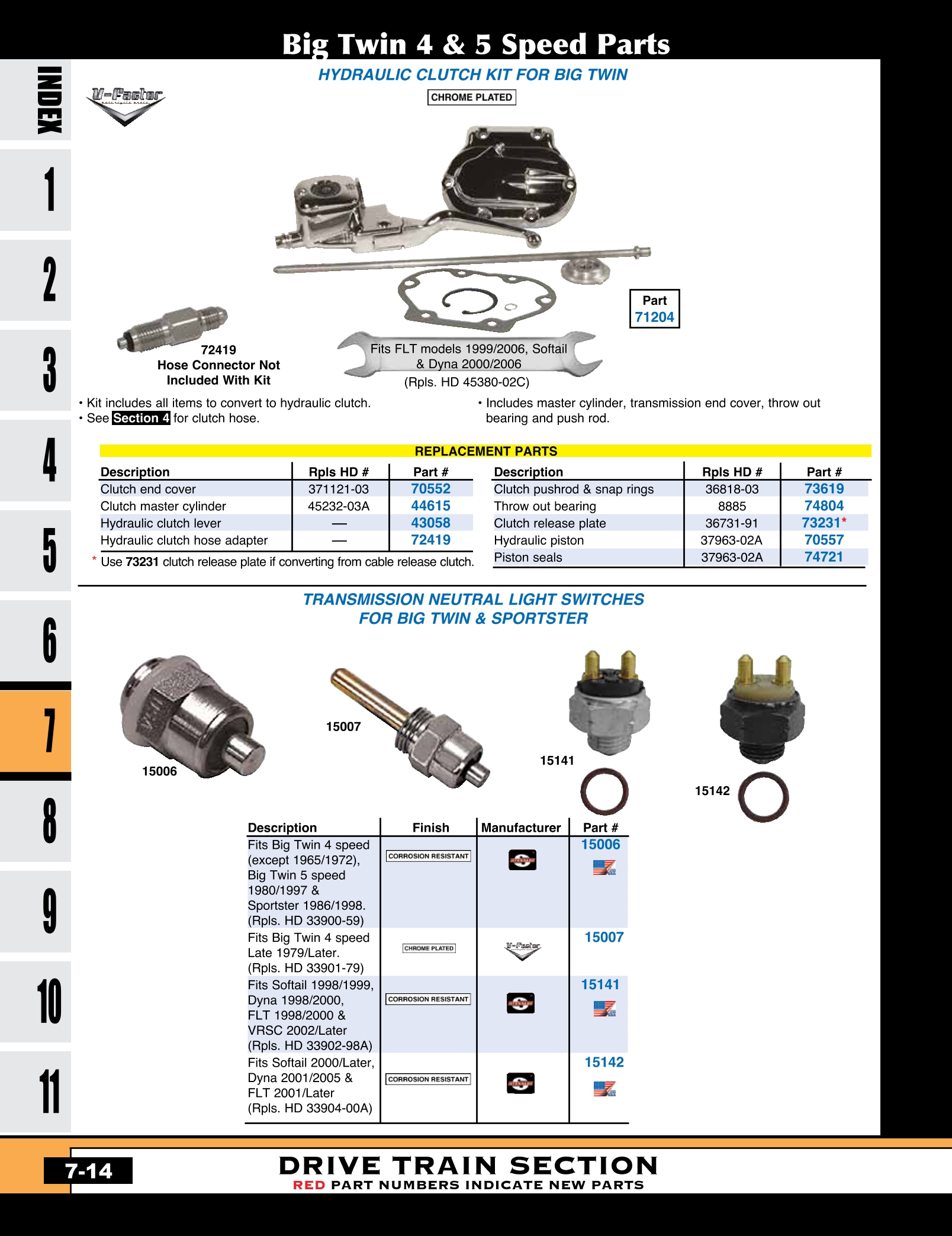 | MU-71204 | HYDRAULIC CLUTCH KIT,CHROME FLT MDLS 99/06,ST & DYNA 00/06 RPLS HD 45380-02C | KIT | 252.80 |