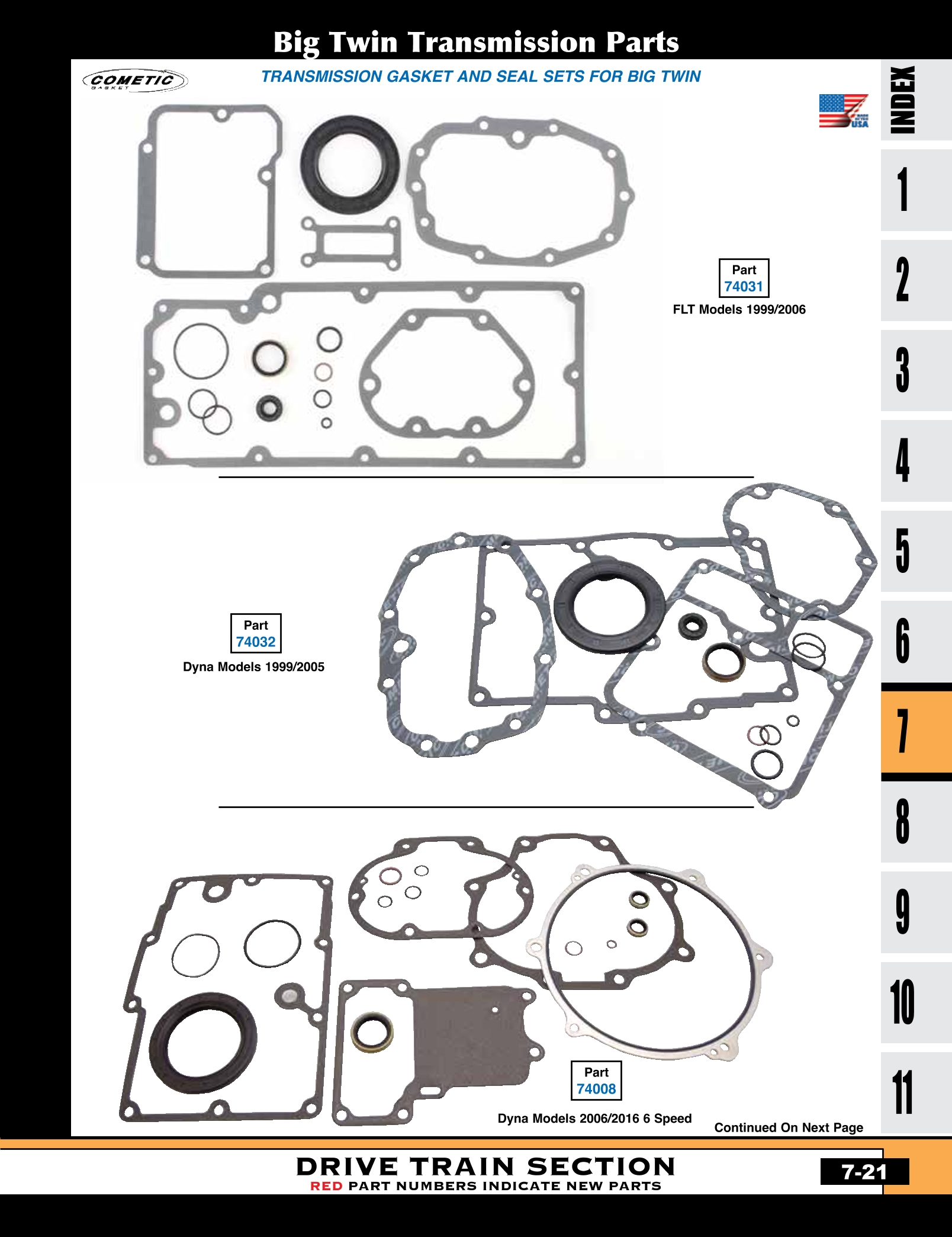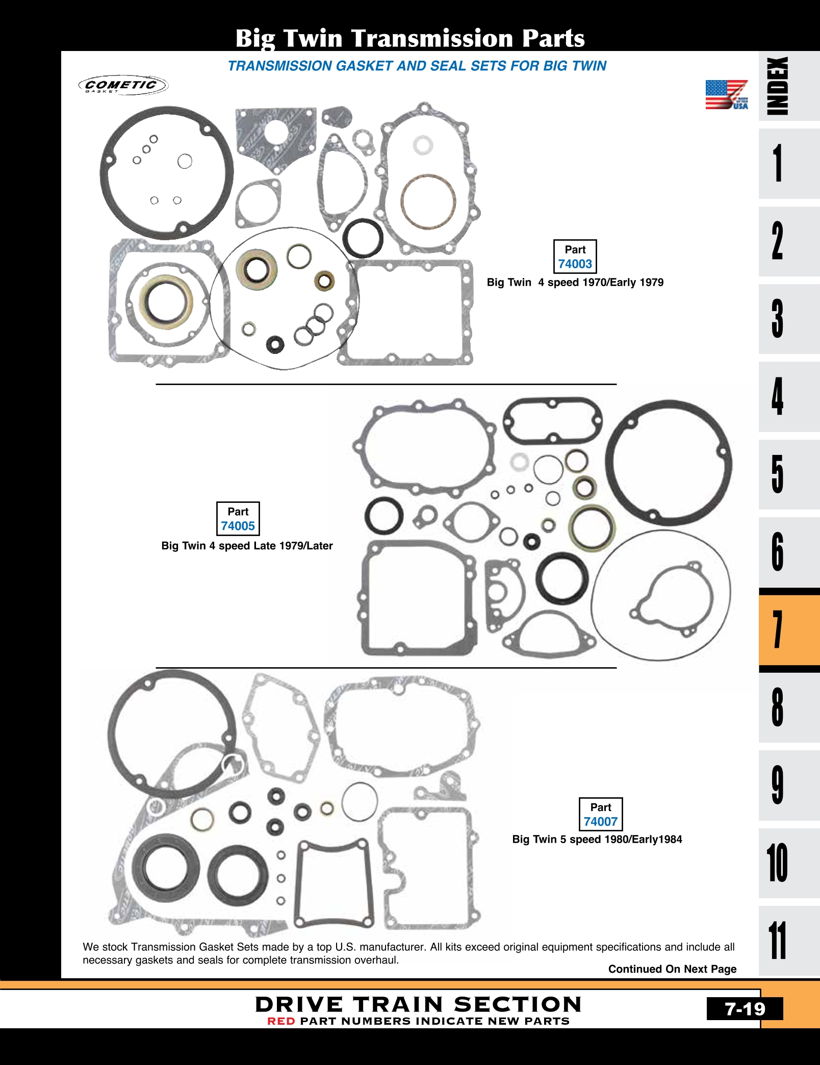 | MU-74005 | TRANSMISSION GASKETS & SEALS BIG TWIN 4 SPD LATE 1979/LATER COMPLETE REBUILD COMETIC C9465 | SET | 50.95 |