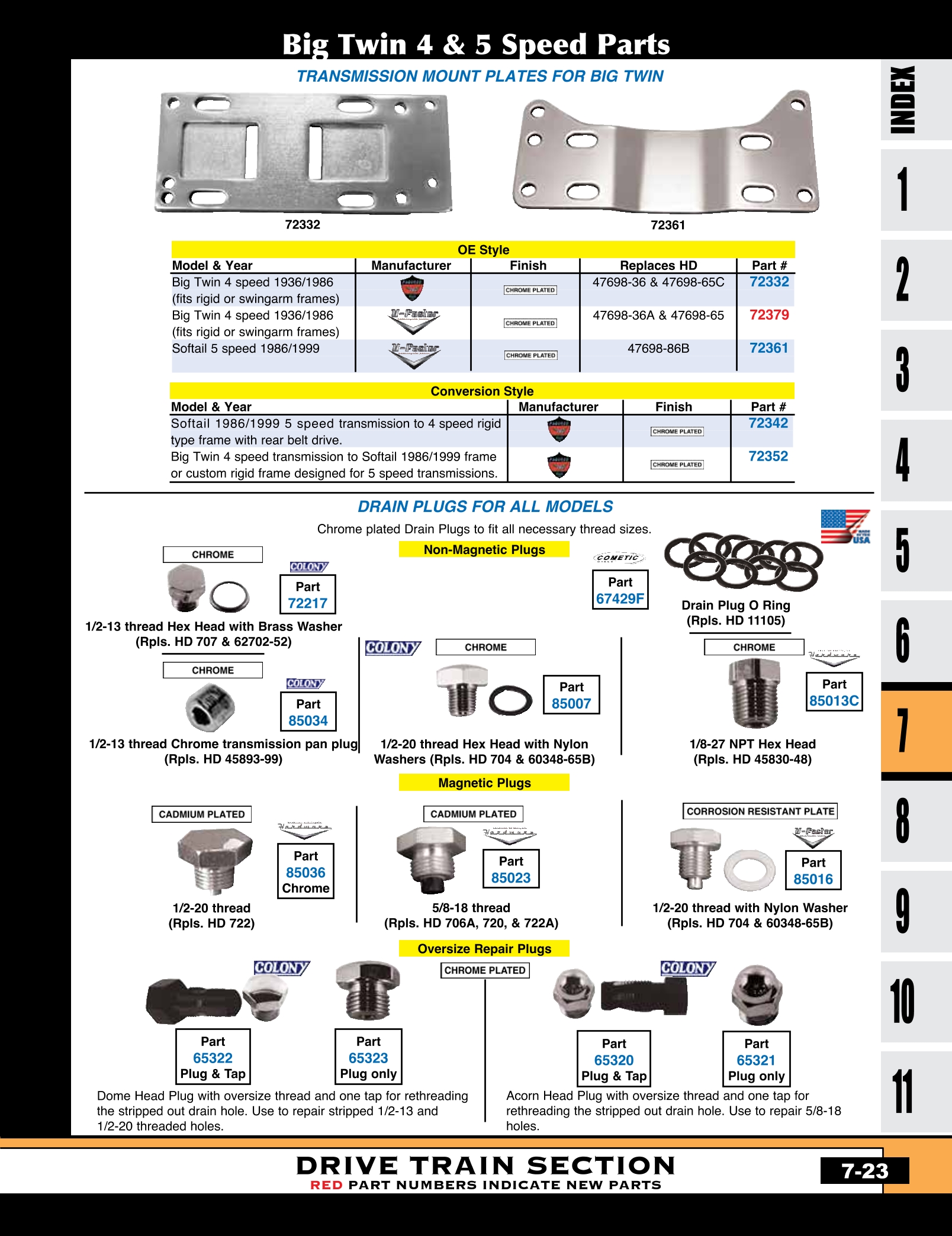 | MU-72355 | TRN FILL PLUG,OEM KNURLED CP BIG TWIN 4 SPD 1936/LATER RPLS HD 37072-79 COLONY 9400-1 | EACH | 15.26 |