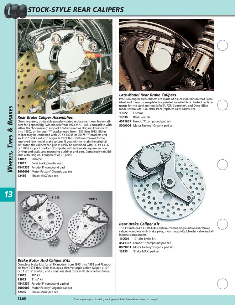 | 13022 | CHROME REAR BRAKE CALIPR L87-1999 | 169.99 | 139.99 |