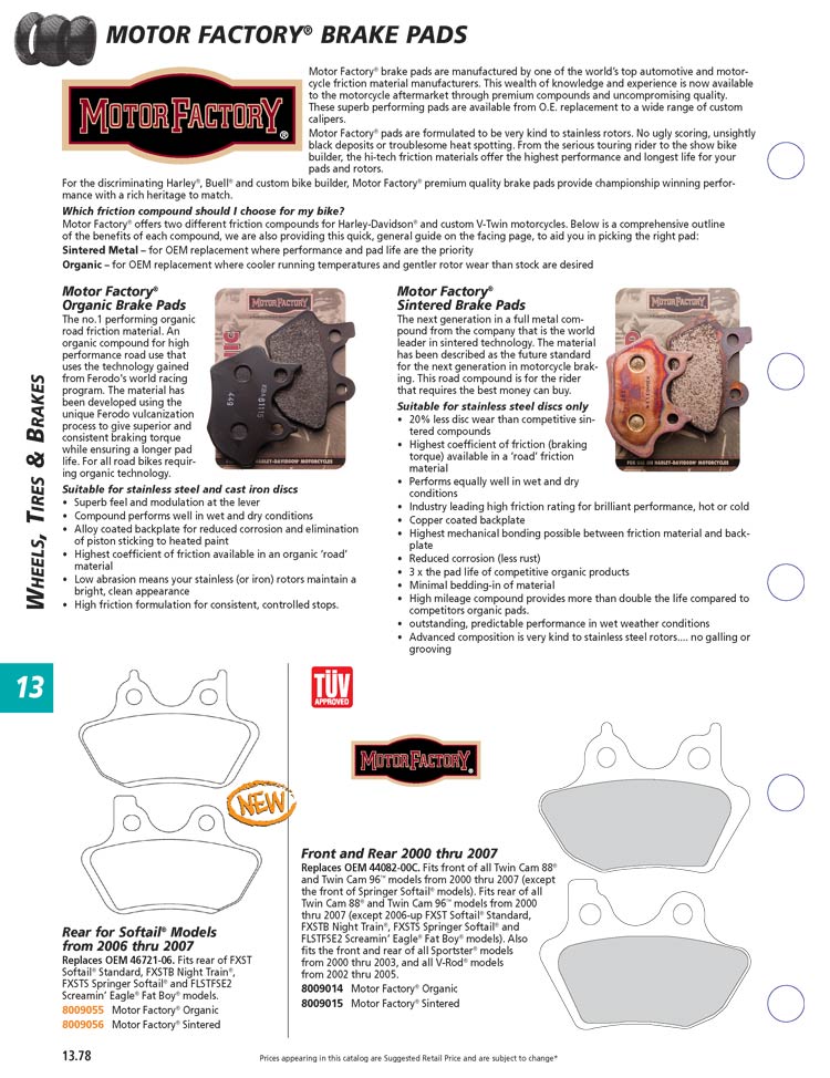 You are here: Custom Chrome Parts => Brakes, Calipers, Pads and Rotors => Motor Factory Brake Pads