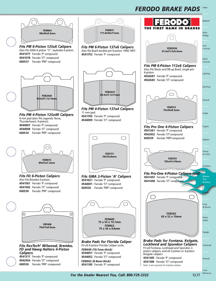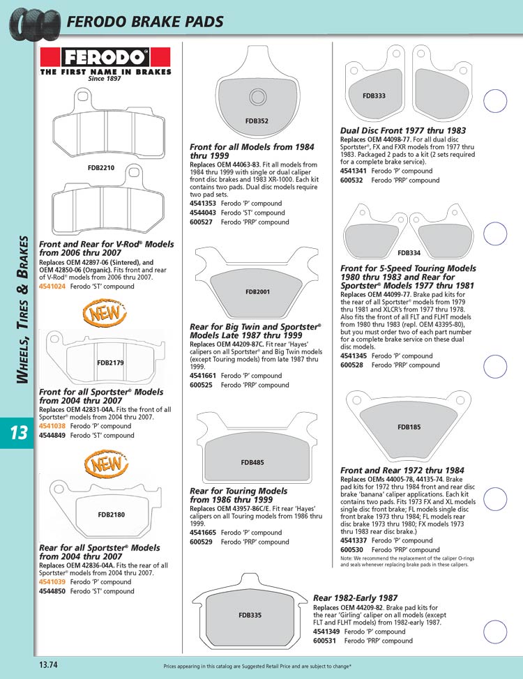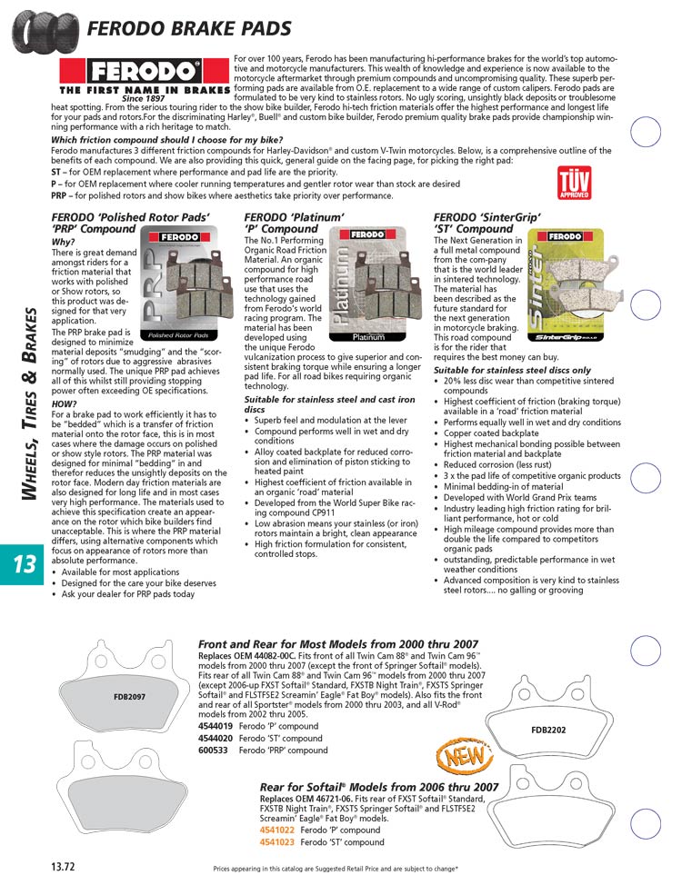 You are here: Custom Chrome Parts => Brakes, Calipers, Pads and Rotors => Brake Pads from Ferodo