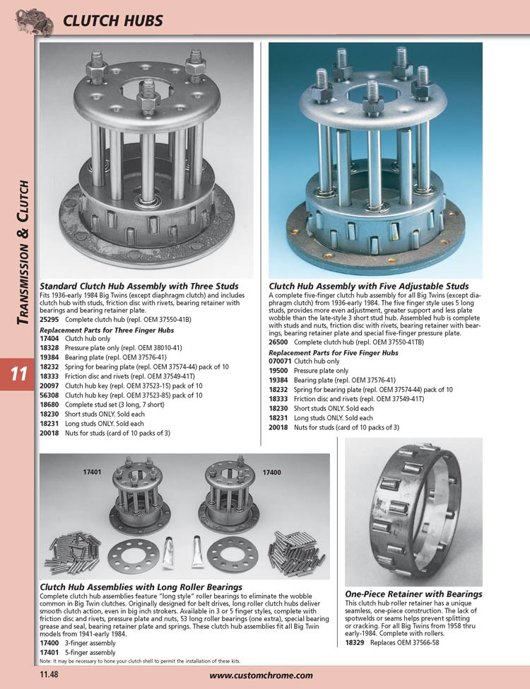 with 3, 5 or 10 finger clutch hubs. Fits Big Twin models1941-early 1984. Replaces OEM