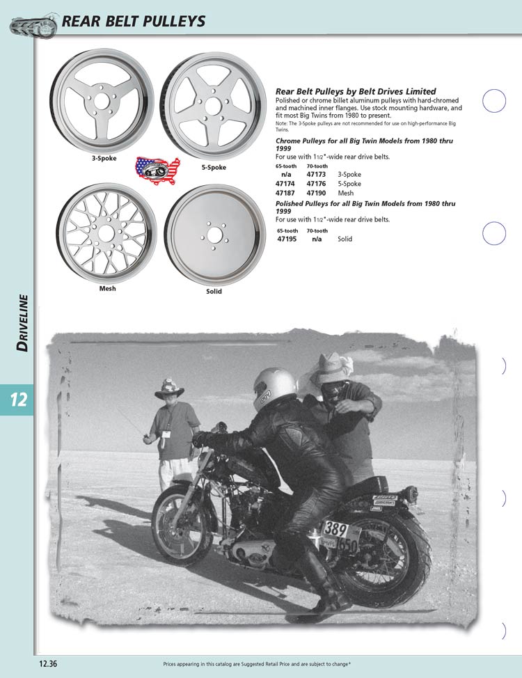 comfort or hard charging acceleration. Pulleys fit most Big Twins with rear belt drives