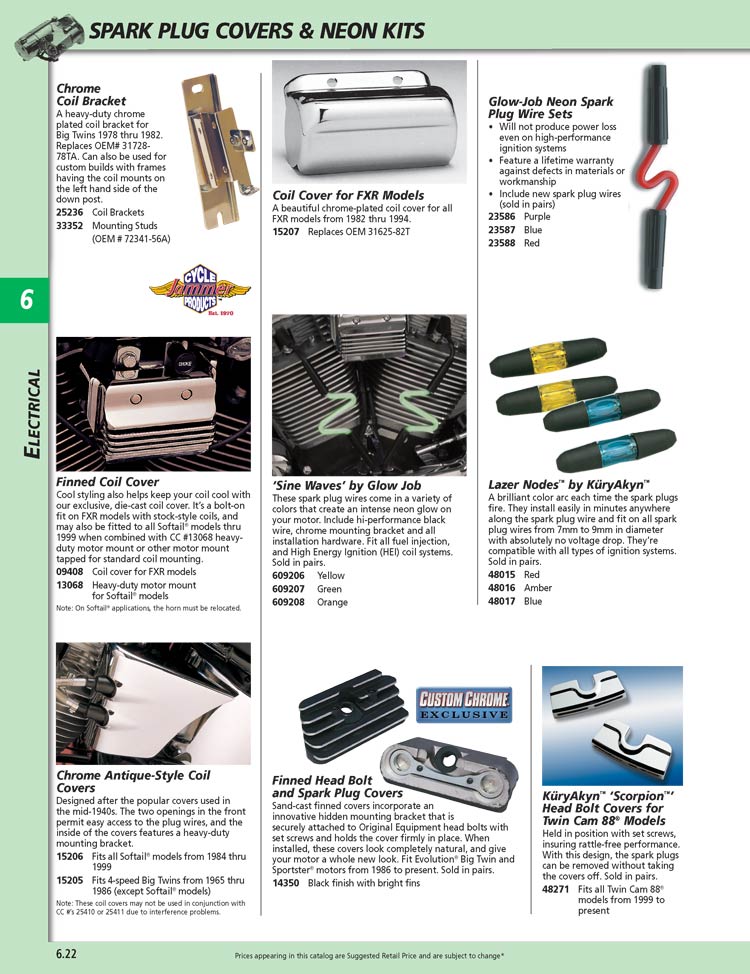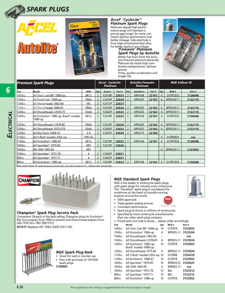 Includes Crane HI-4 single fire ignition (CCI #24-512), single fire performance dual coil (CCI #24-518) and reactive spiral core silicone spark plug wires (CCI #24-412). A complete modern ignition kit for Big Twins from 1970 to present and Sportster models 1971 to present.