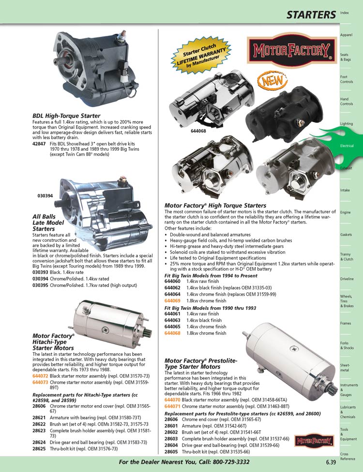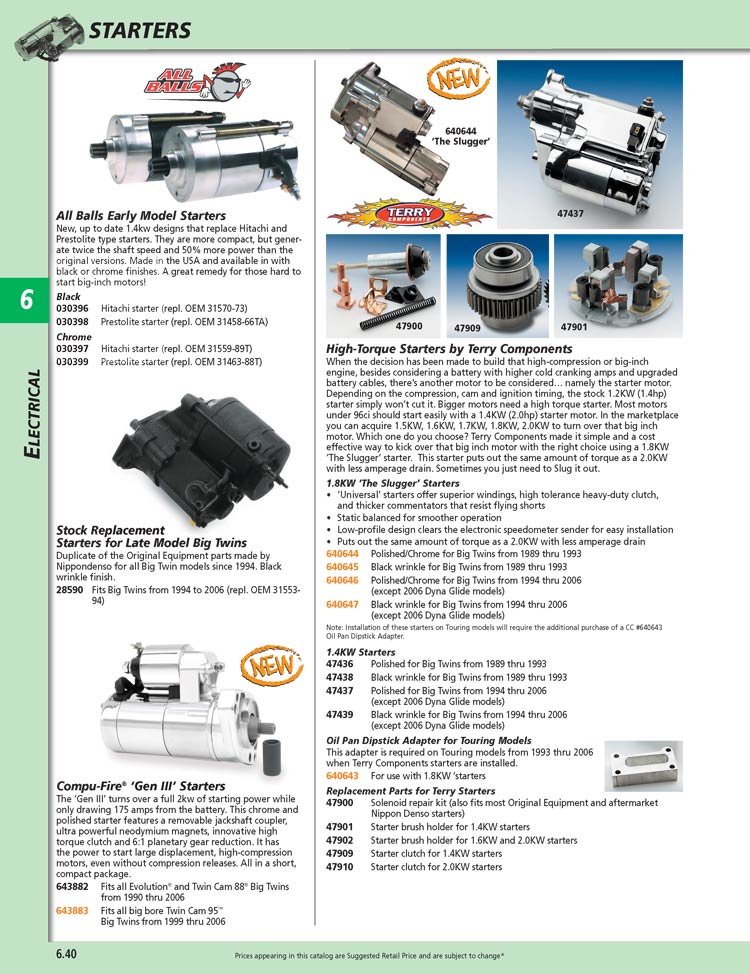 REPLACEMENT STARTER PARTS FOR BIG TWINS AND SPORTSTERS