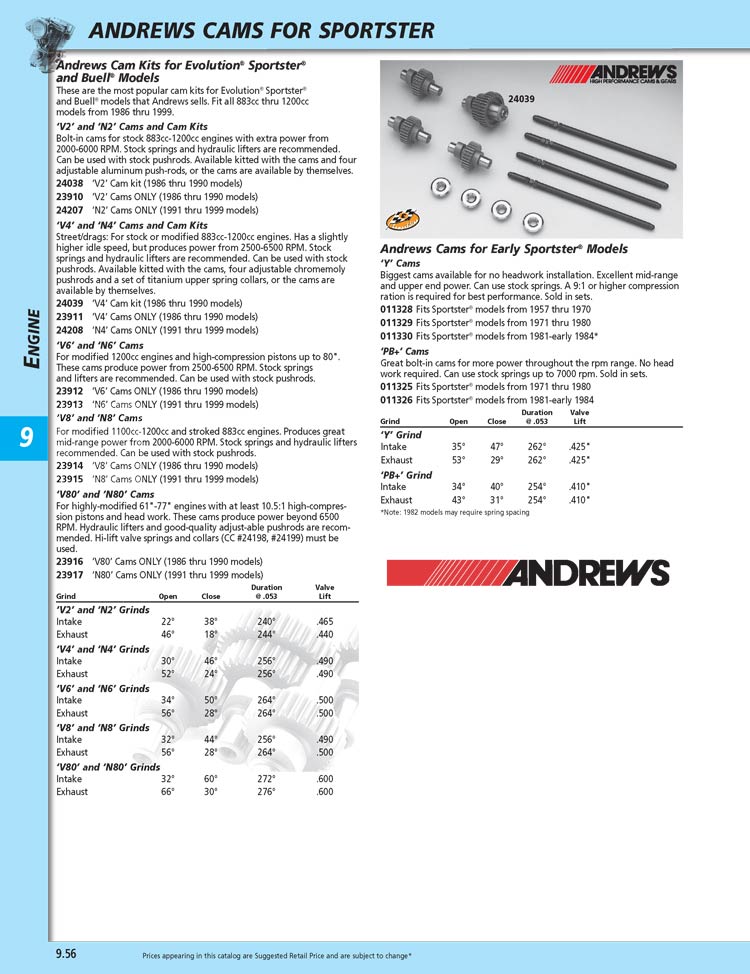 | 24038 | CAM KIT-ANDREWS EV2-SPORTSTER | 385.99 | 332.99 |