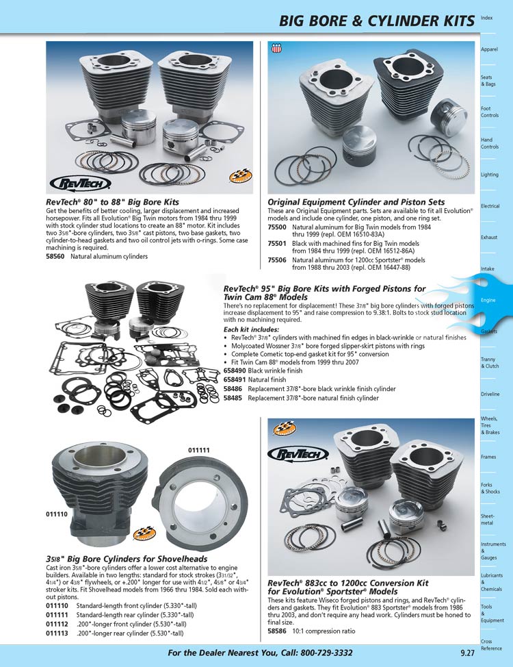 Note: For high-performance pistons to go along with these cylinders look for the Custom Chrome RevTech® forged stroker pistons on our pistons page.