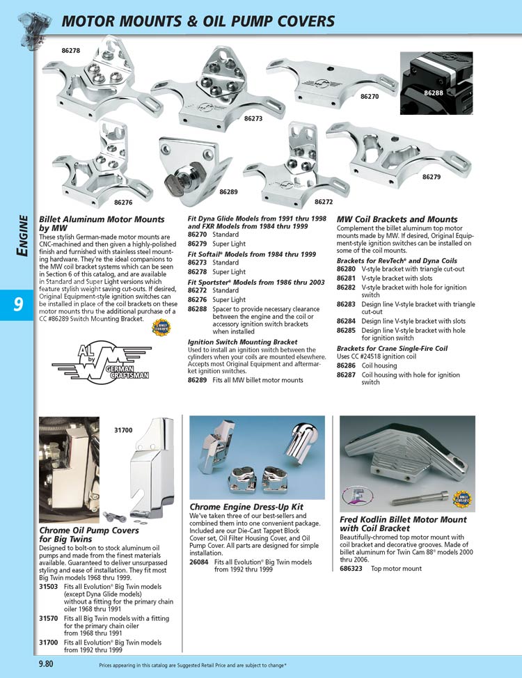 | 09475 | POL.BILLET MOTOR MNT-FXST 86UP | 189.99 | 159.99 |