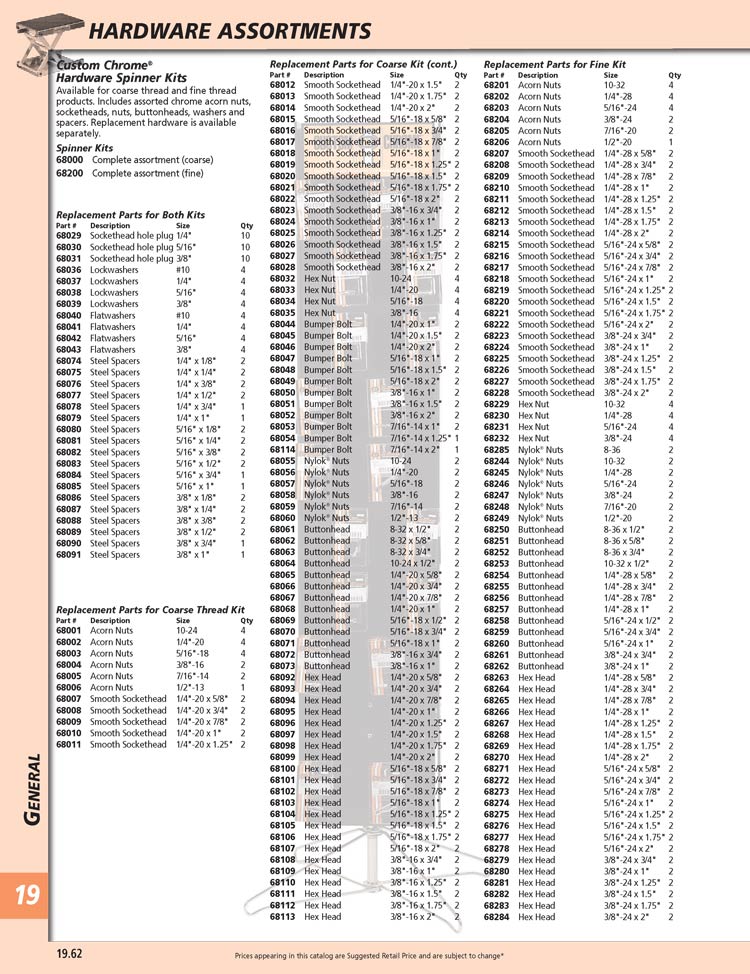 | 68109 | CHROME HEXHEAD 3/8-20 X 1 2PK | 6.79 | 5.49 |