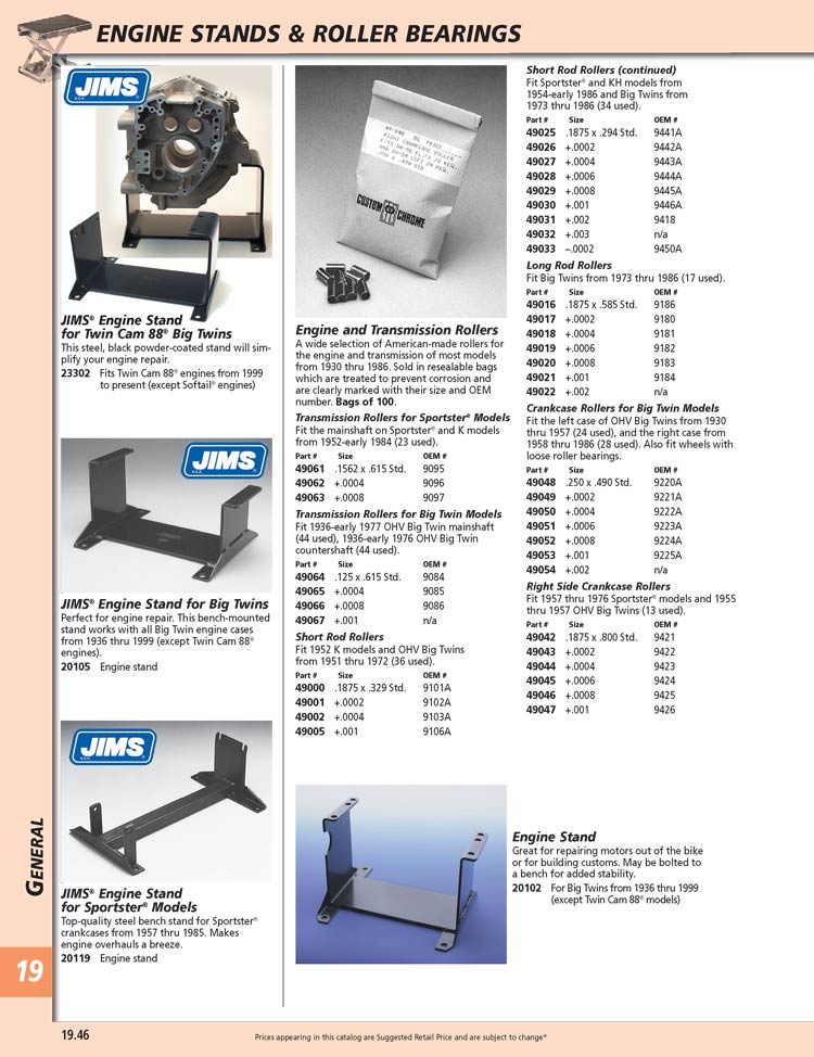 | 23302 | JIMS TWIN CAM ENGINE STAND | 79.99 | 67.49 |
