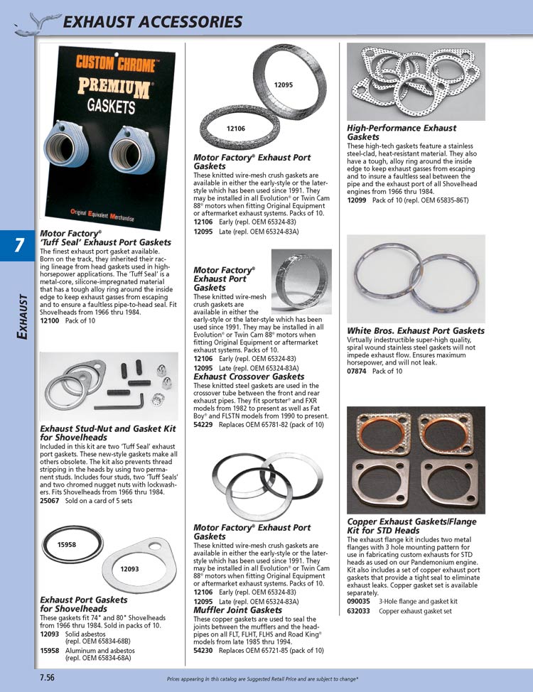 | 12099 | CHROME EXHAUST PORT GASKET/SHOVEL(10PK) | 9.99 | 8.49 |