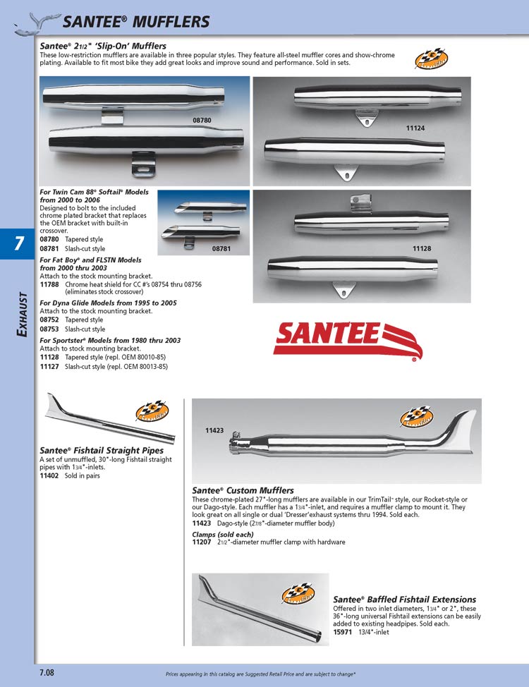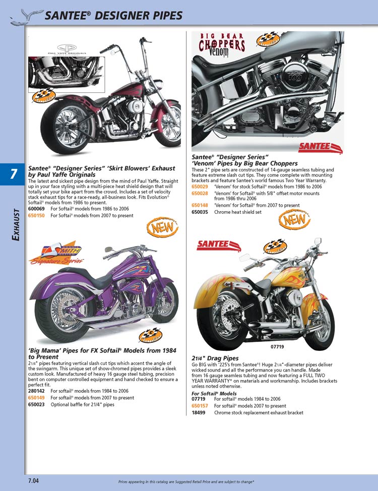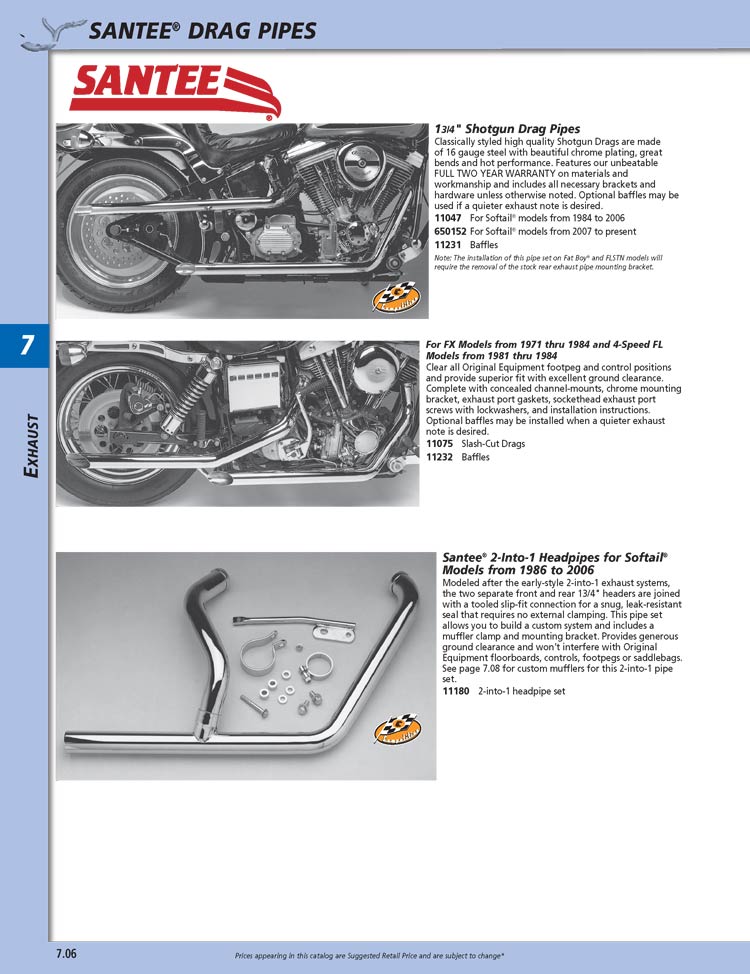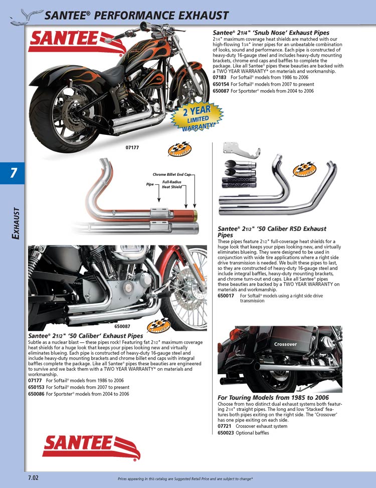 | 07721 | SANTEE 225 FLH CROSSOVER PIPES | 329.99 | 279.99 |