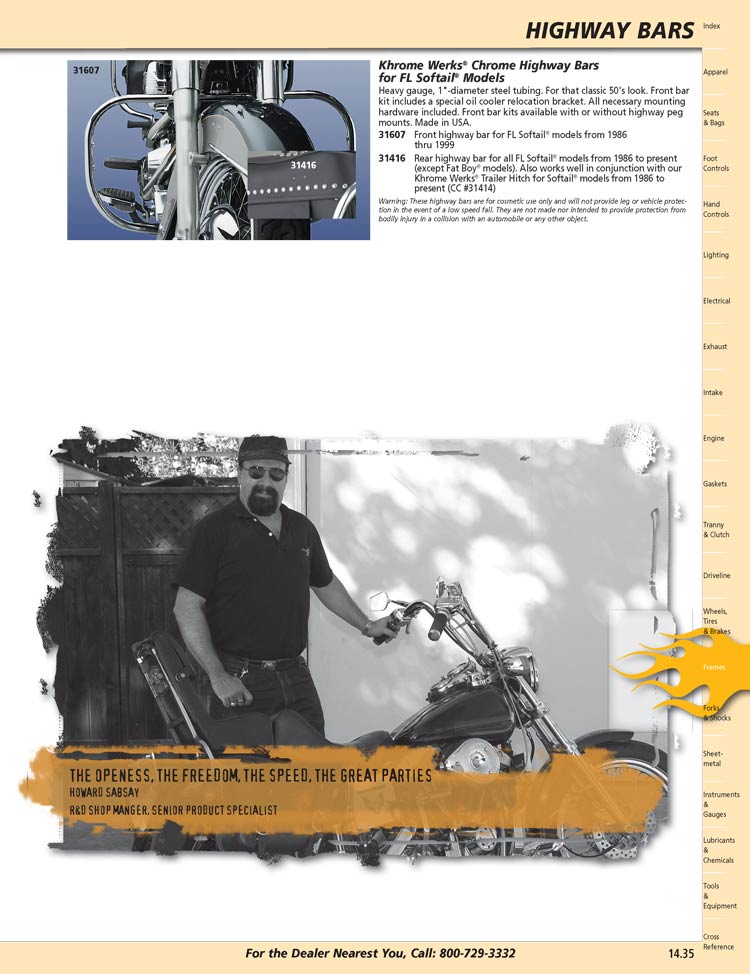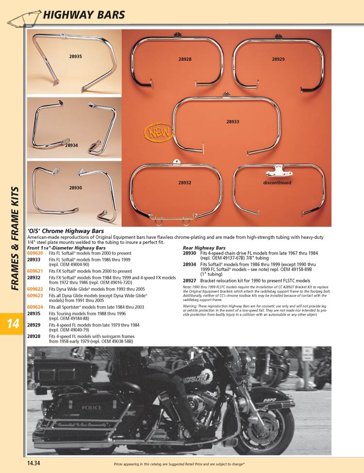 | 609620 | 00-06 FL SOFTAIL H/WAY BAR | 168.99 | 138.49 |