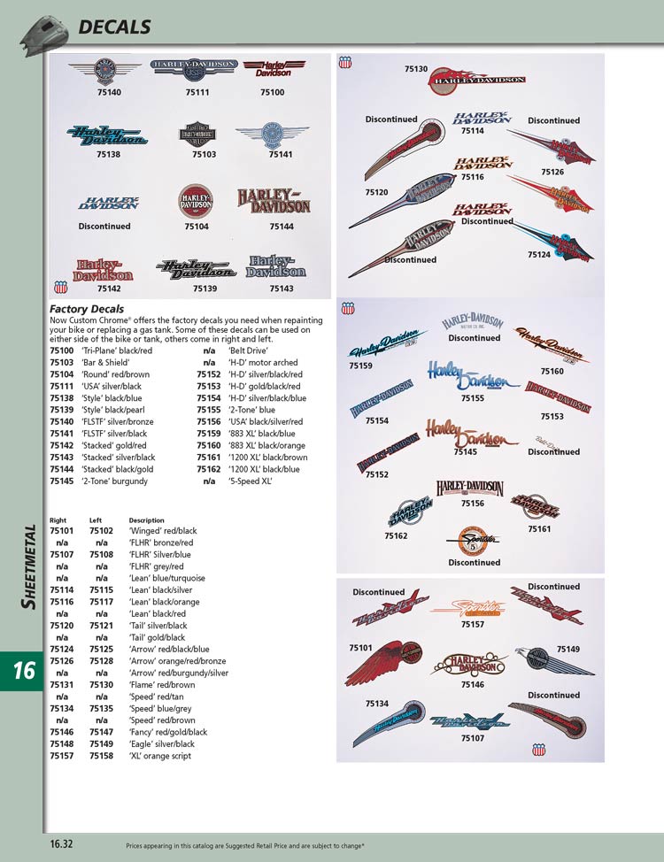 | 75152 | H-D TANK DECAL-SLV W/BLK&RED T | 24.99 | 20.99 |