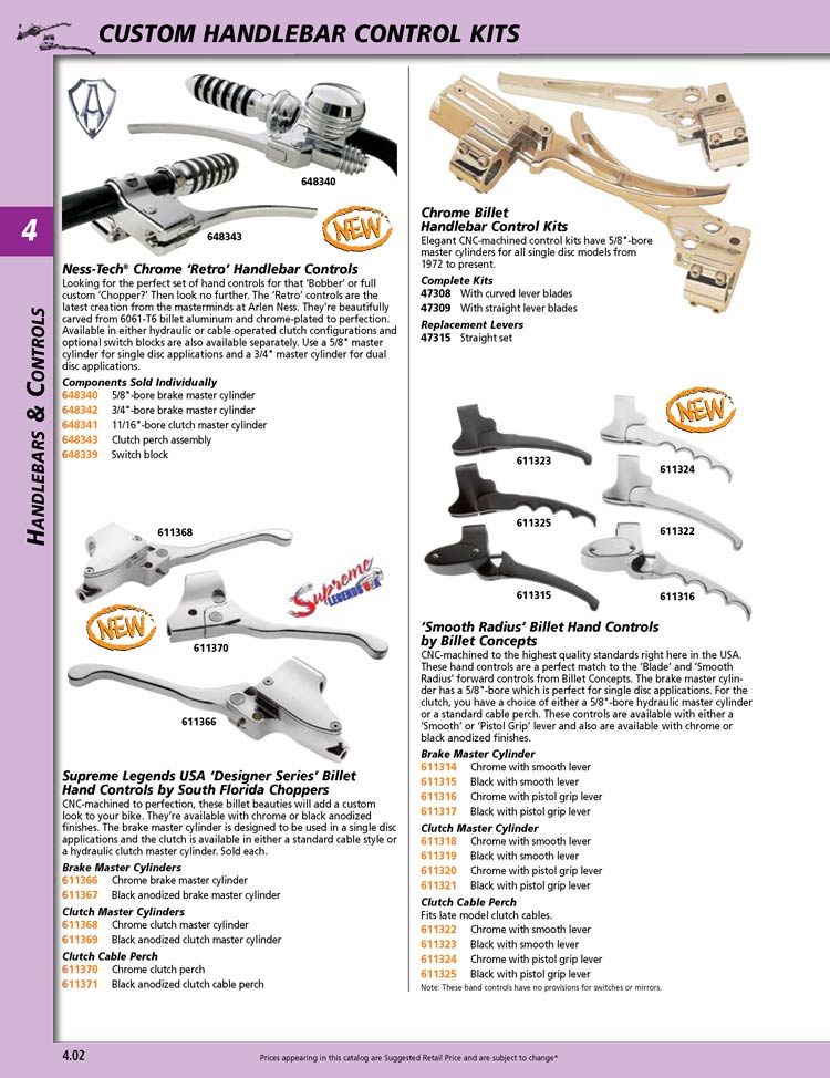 | 47315 | CHROME BILLET LEVERS STRAIGHT.82-95 | 164.99 | 139.99 |