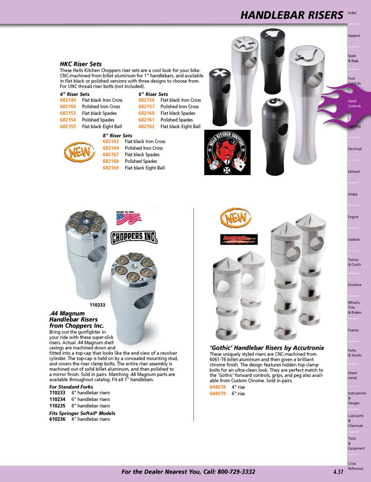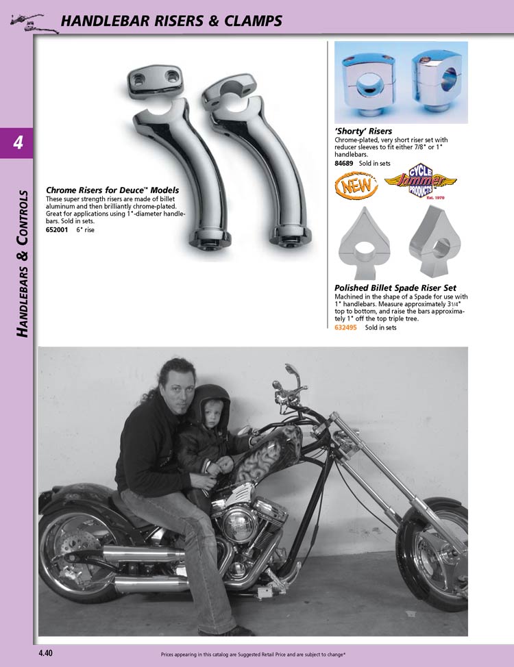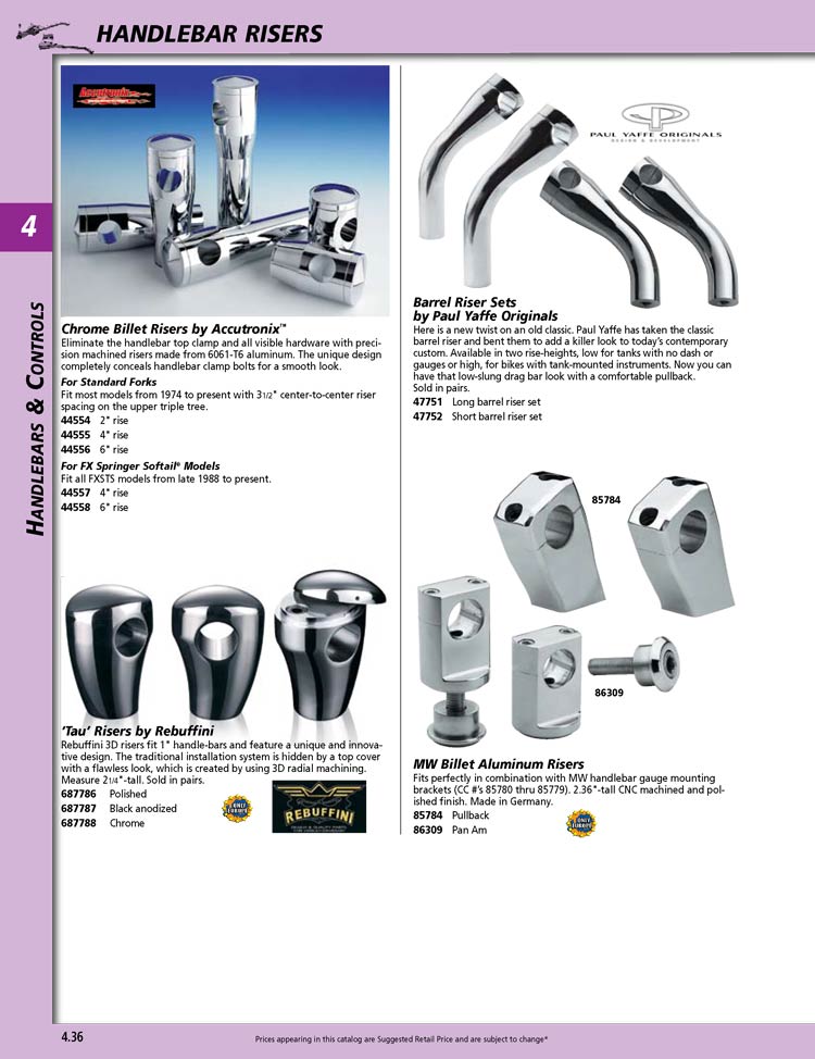 | 44555 | CHROME BILLET 4 H/BAR RISERS 74-UP | 199.99 | 169.99 |