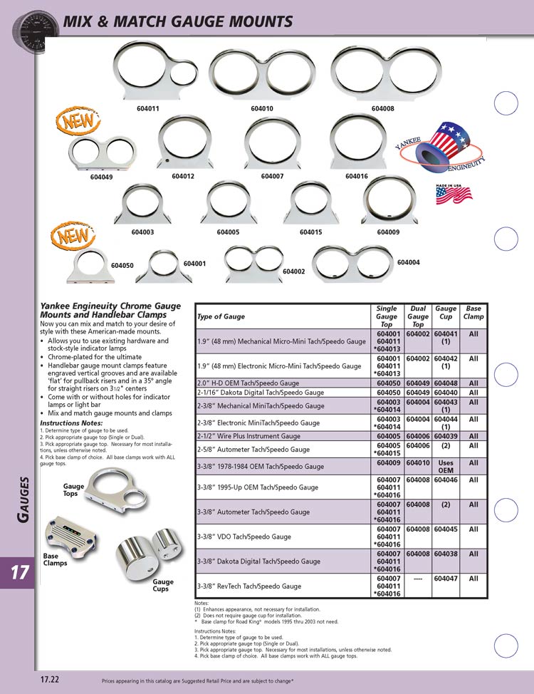 | 604008 | CHROME DUAL3-3/8 OEM95UP GAGE MNT | 159.99 | 134.99 |