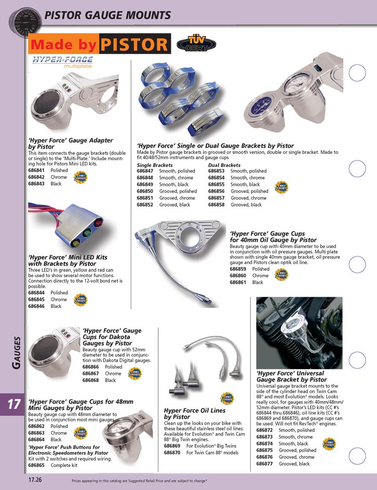 | 10246 | CHROME MINI GAUGE MOUNT 1.25 TBAR | 74.99 | 63.49 |