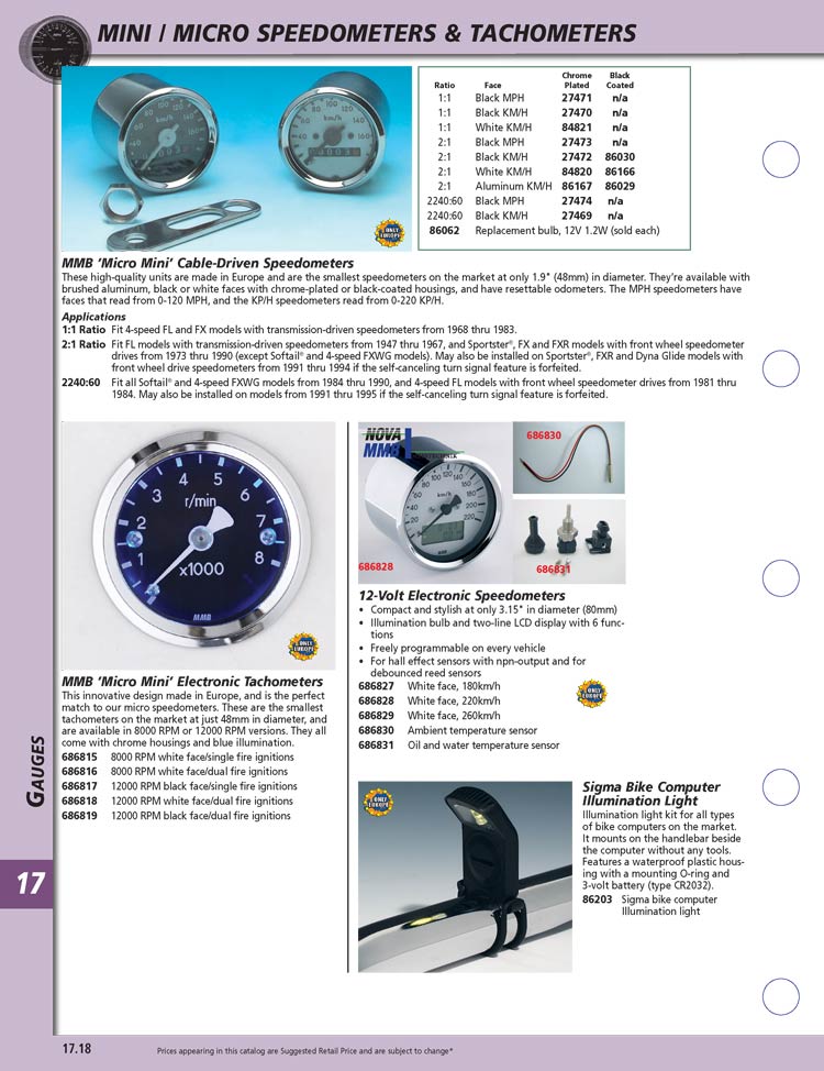 | 310718 | 2240 MINI SPEEDO W/RESET MPH | 54.99 | 46.49 |