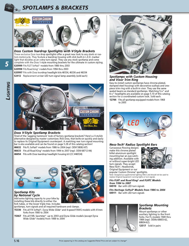 | 12469 | CHROME SPOTLITE BRACKET/FLST86-UP | 42.99 | 36.49 |