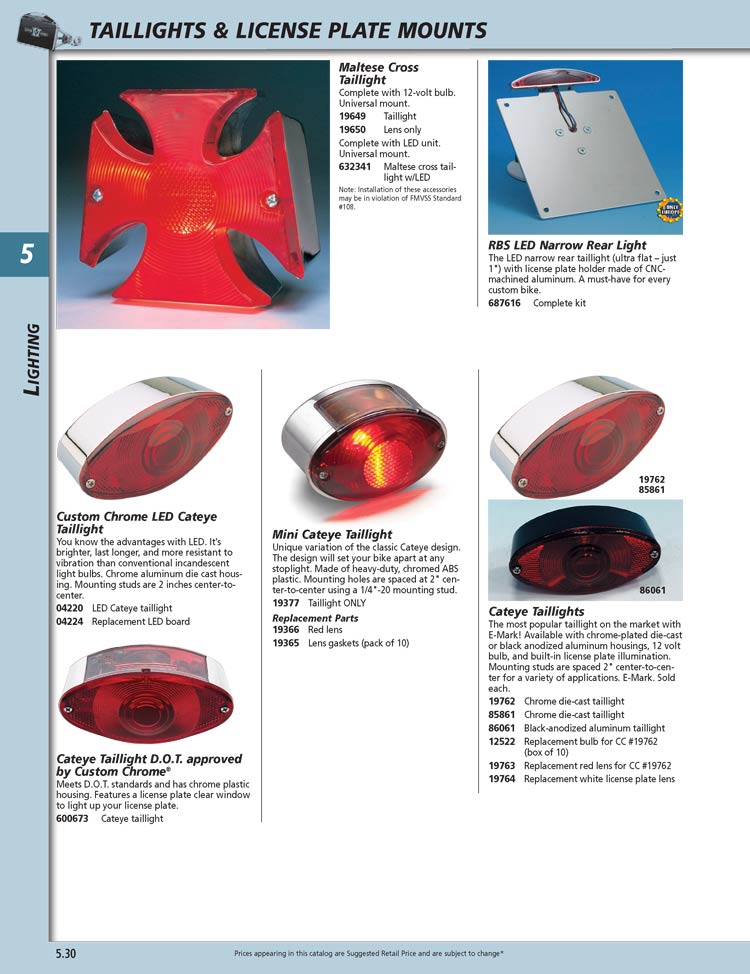 | 19762 | CHROME CATEYE TAILIGHT 12 VOLT | 31.99 | 26.49 |