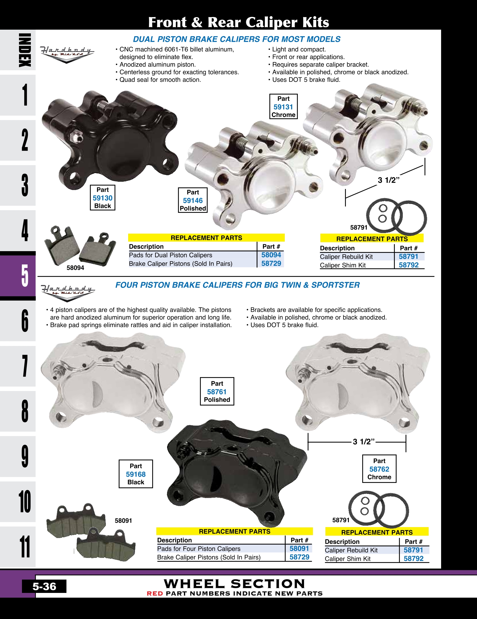| MU-59130 | BRAKE CALIPER, DUAL PISTON ALL MODELS BLACK ANODIZED | EACH | 199.95 |
