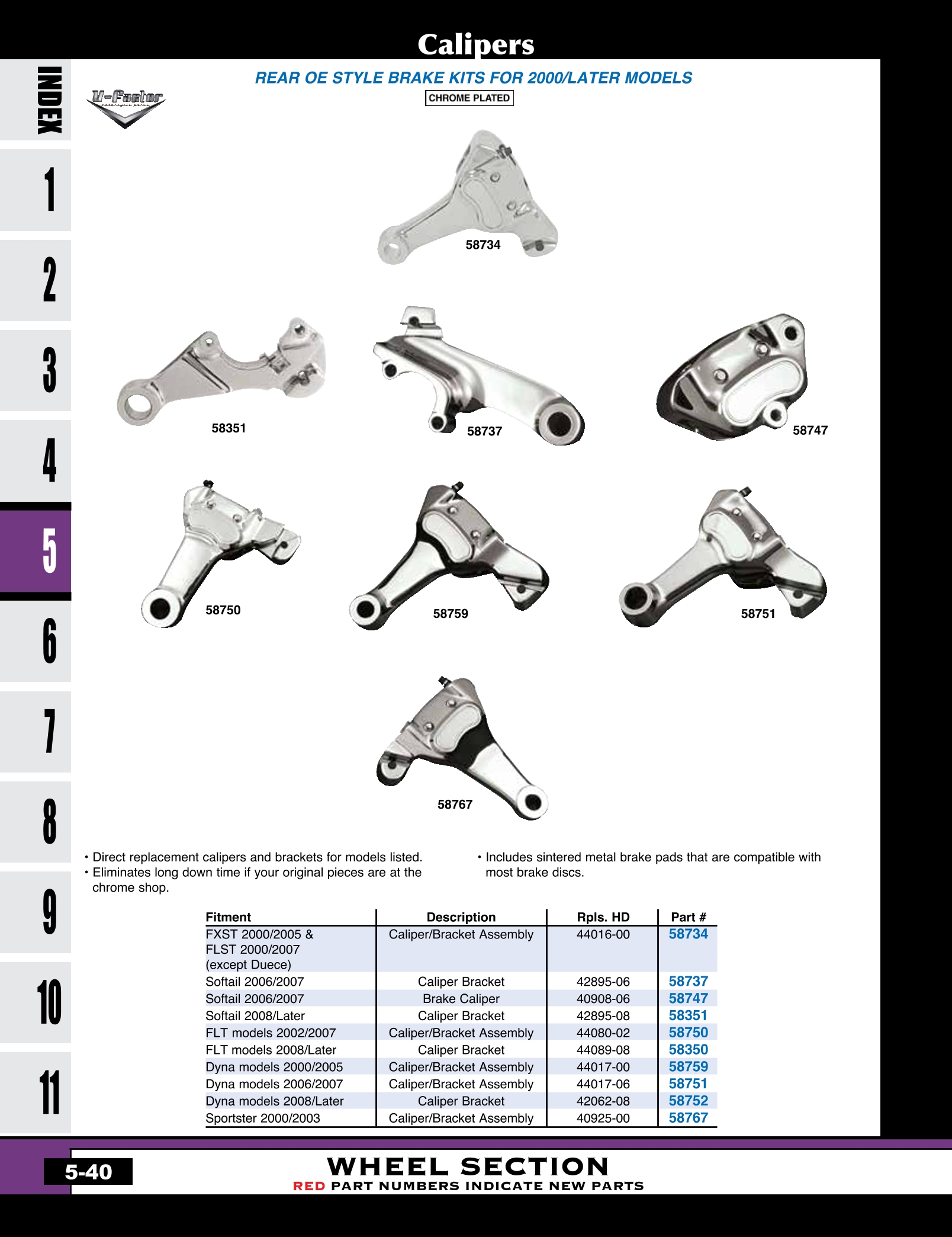 | MU-58360 | CHROME BRAKE CALIPER INSERT USE ON 00/LATER HD FRT/REAR RPLS HD 44477-99 | EACH | 9.95 |