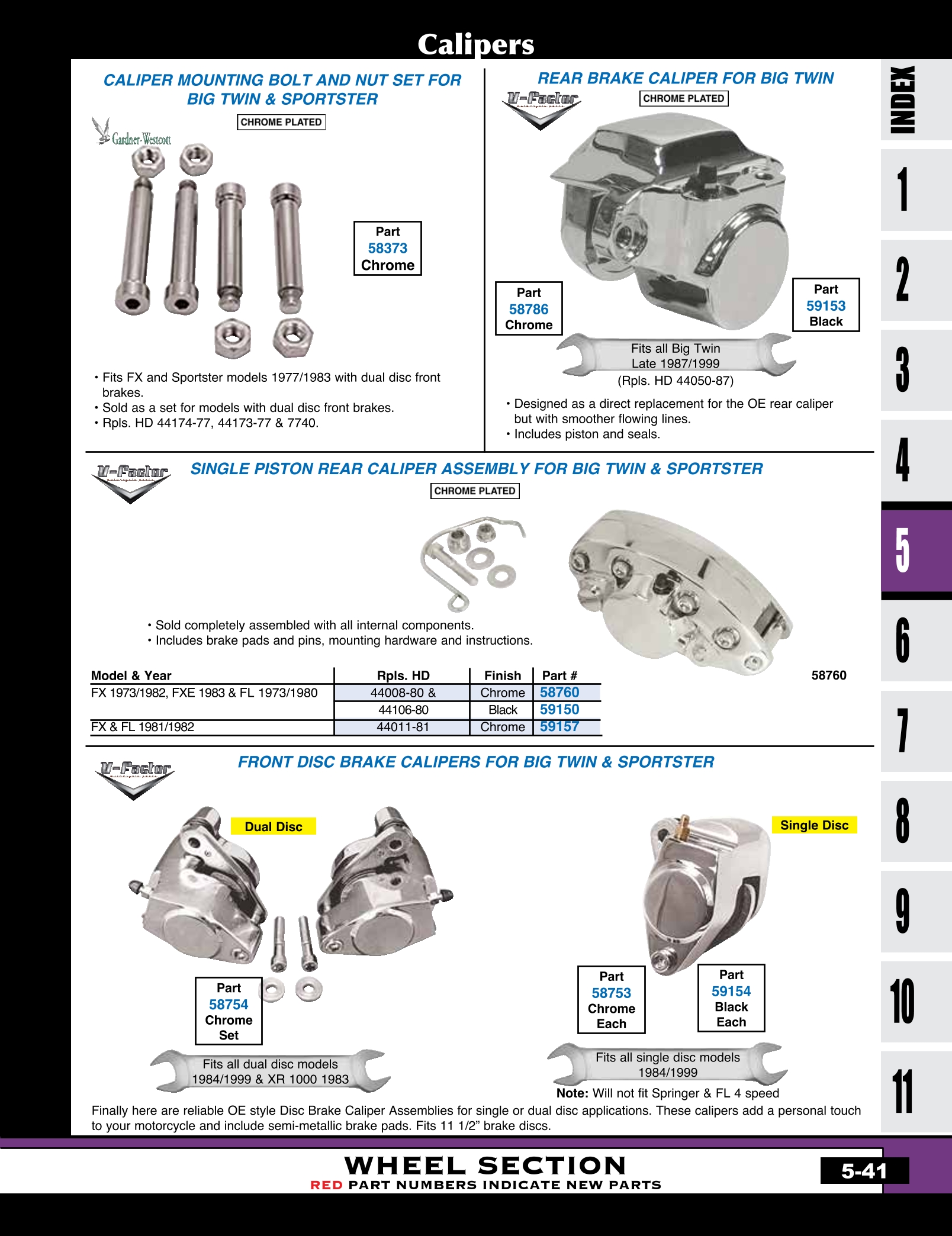 | MU-59131 | BRAKE CALIPER, DUAL PISTON ALL MODELS CHROME | EACH | 212.50 |