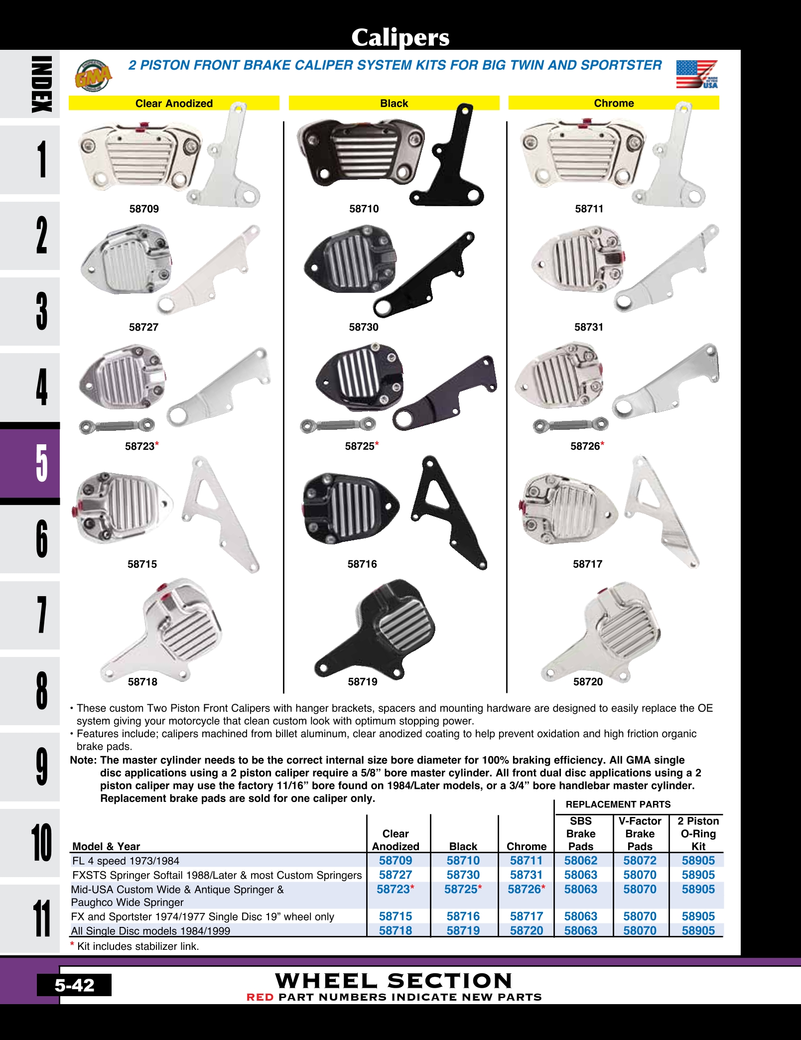 | MU-58727 | BRAKE CALIPER KIT,GMA FRONT FITS 88-99 FXSTS & AFTERMARKET CLEAR ANODIZED, GMA200SSTD | KIT | 343.55 |