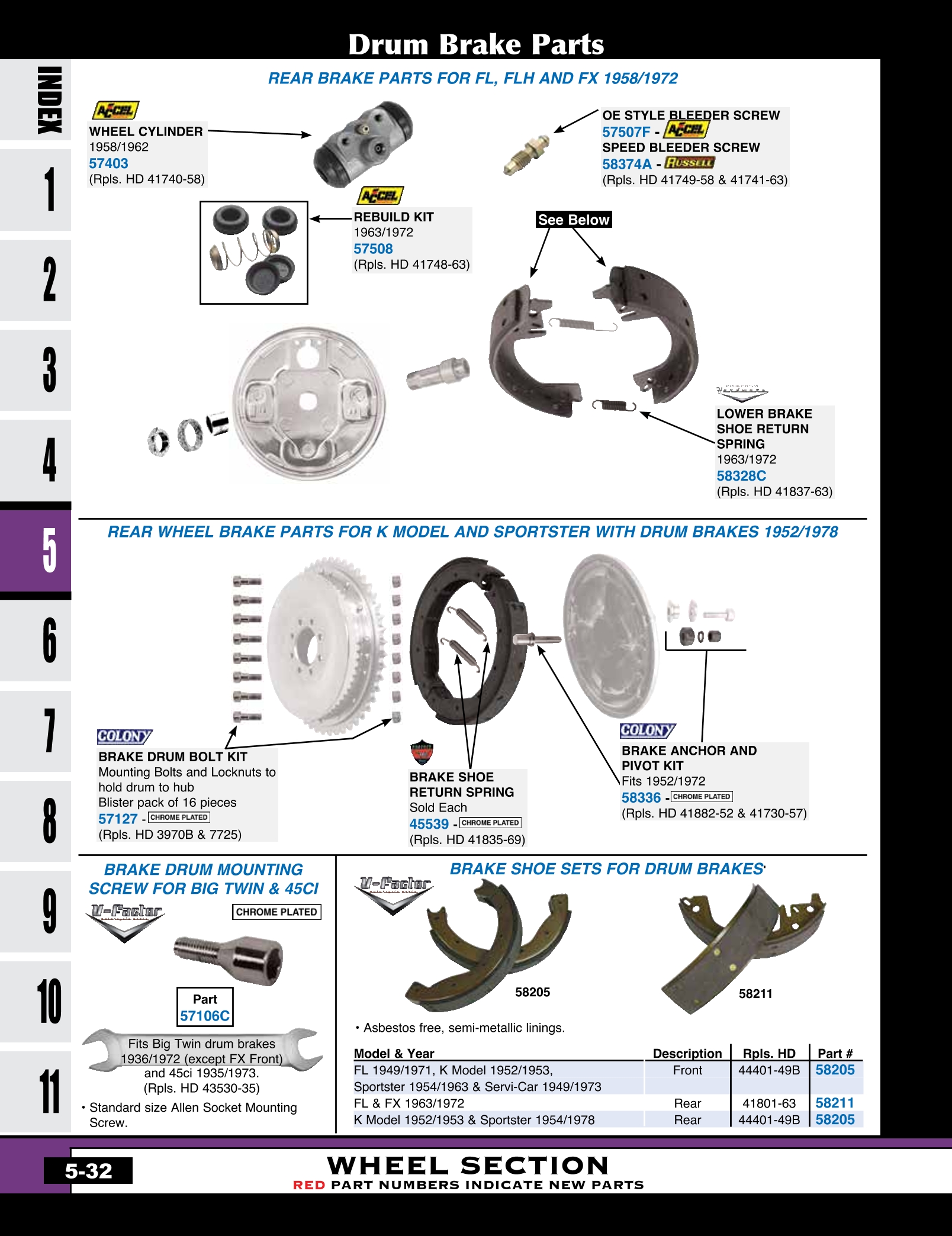 | MU-57106 | BRAKE PART,DRUM MOUNTING SCREW BIG TWIN & 45 CI W/DRUM BRAKES REPLACES HD 43530-35 | PK5 | 19.95 |