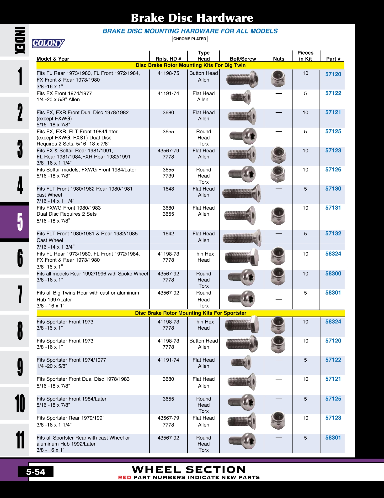 | MU-57126 | DISC BRK MT KIT RD HD TORX CP ST FXWG(FR) 1984/LATER RPLS HD #3655&7739 MFG.8794-10 | KIT | 19.58 |
