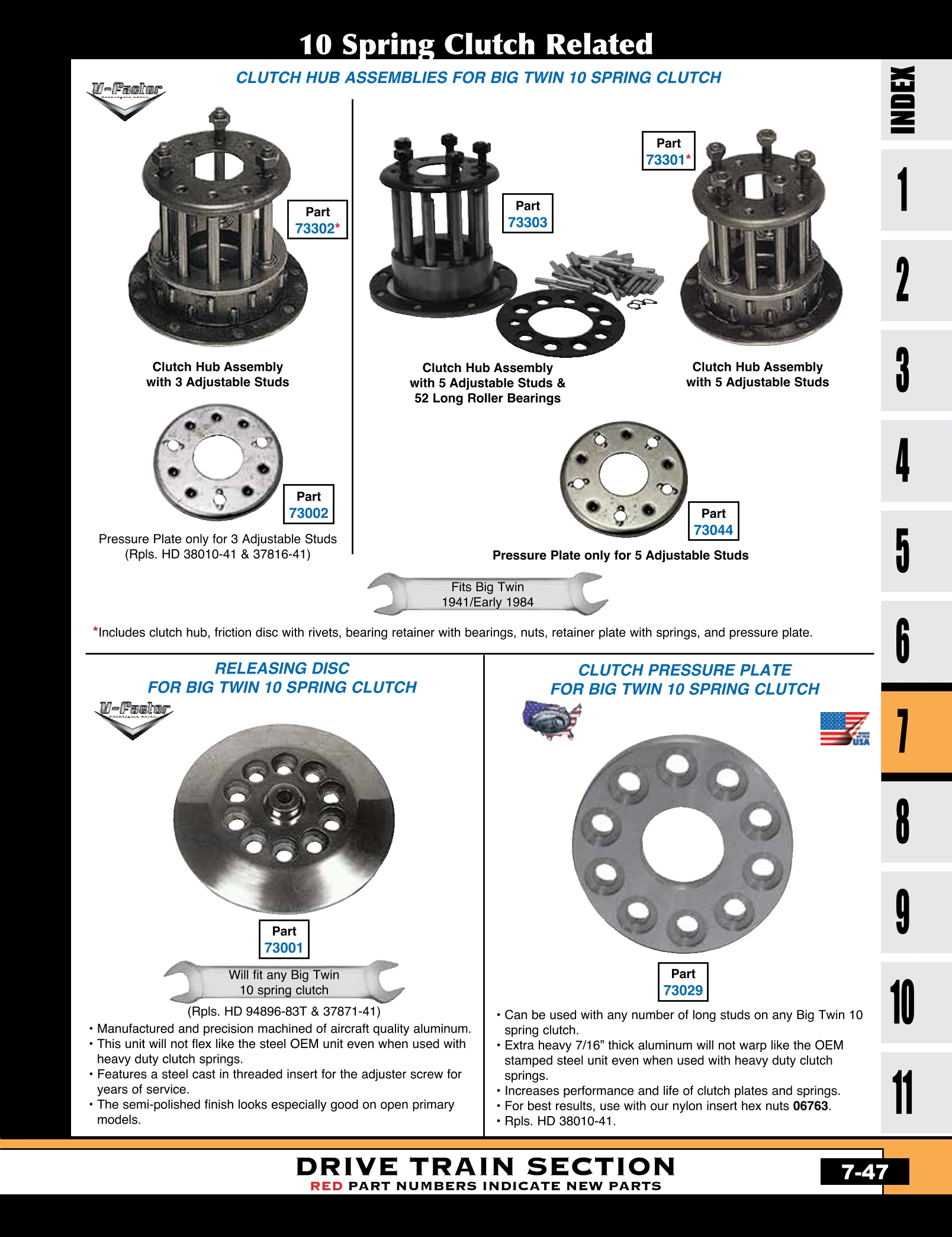 | MU-73002 | CLUTCH PRESSURE PLATE BIG TWIN 10 SPRING CLUTCH RPLS HD 38010-41 & 37816-41 | EACH | 5.15 |