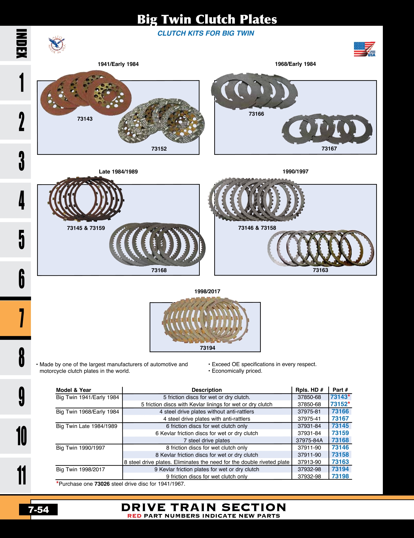 | MU-73143 | CLUTCH KIT,WET OR DRY SYSTEM BIG TWIN 41/L 10 SPRING CLUTCH REPLACES HD 37850-68 5 DISCS | KIT | 39.95 |