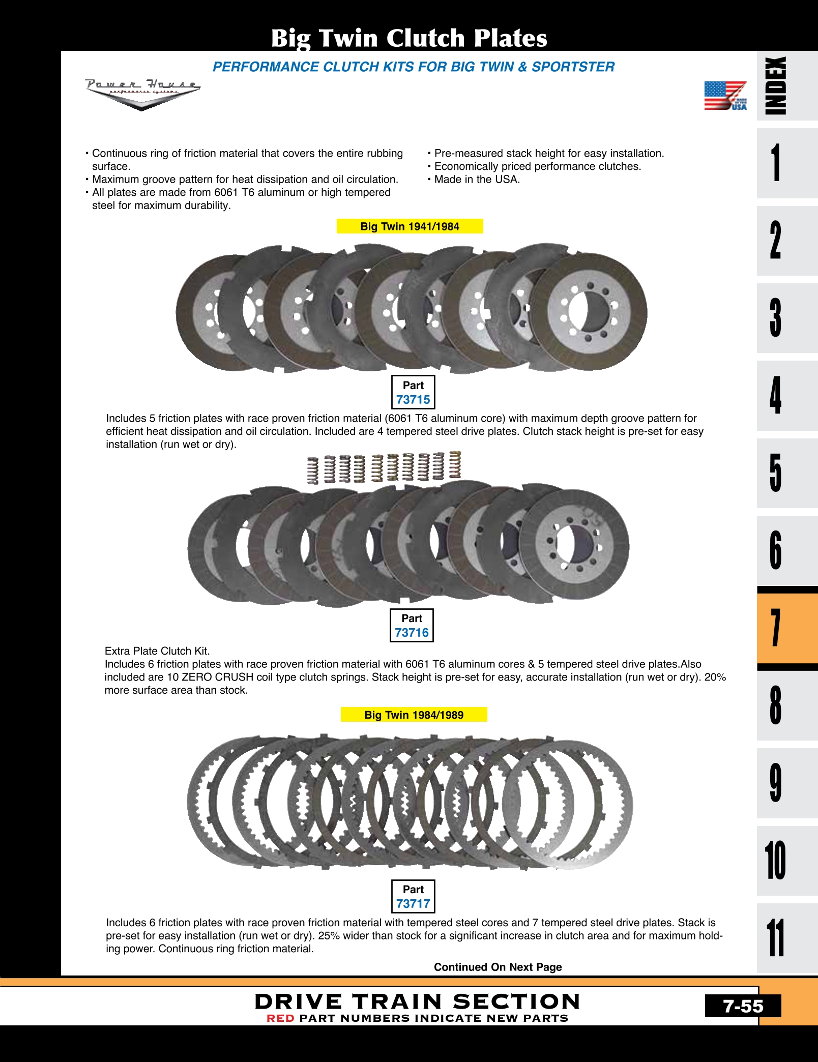 | MU-73717 | POWER HOUSE PERF. CLUTCH KIT USE ON 1984/89 BIG TWIN 7 FRICTION & STEEL PLATES | EACH | 124.95 |