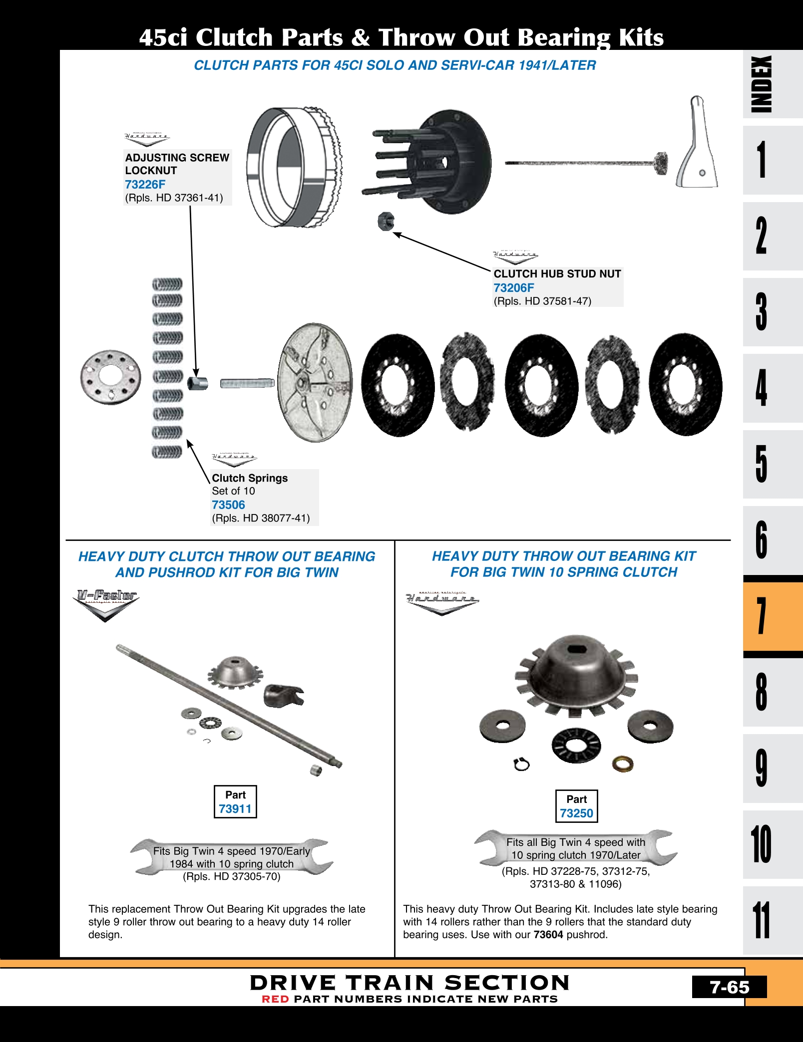 | MU-73911 | CL THROW OUT BRG/PUSHROD KIT BIG TWIN 10 SPRING CLUTCH 70/L REPLACES HD 37305-70 | KIT | 28.50 |