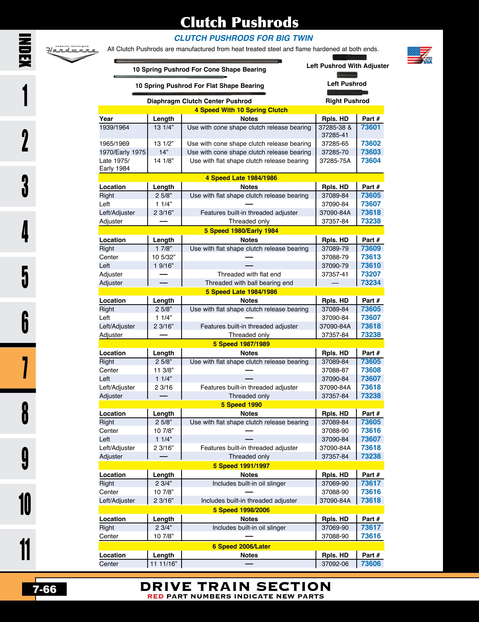| MU-73609 | CLUTCH PUSHROD,RIGHT 1-7/8" LG BIG TWIN 5 SPD 1980/EARLY 1984 REPLACES HD 37089-79..MFG.7107 | EACH | 8.00 |