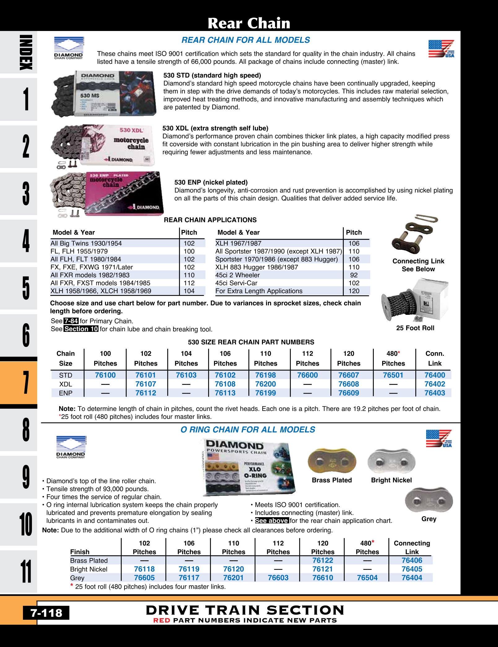 | MU-76100 | CHAIN,REAR STANDARD DIAMOND BIG TWIN FL,FLH 1955/1979 SIZE 530 100 PITCHES | EACH | 98.45 |