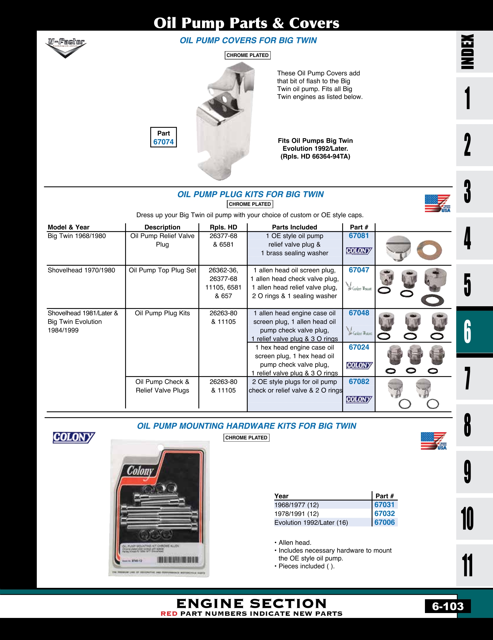 | MU-67006 | OIL PUMP PART,MOUNTING KIT BIG TWIN EVO 1992/L ALLEN HEAD CHROME PLATED COLONY 9762-16 | KIT | 12.67 |