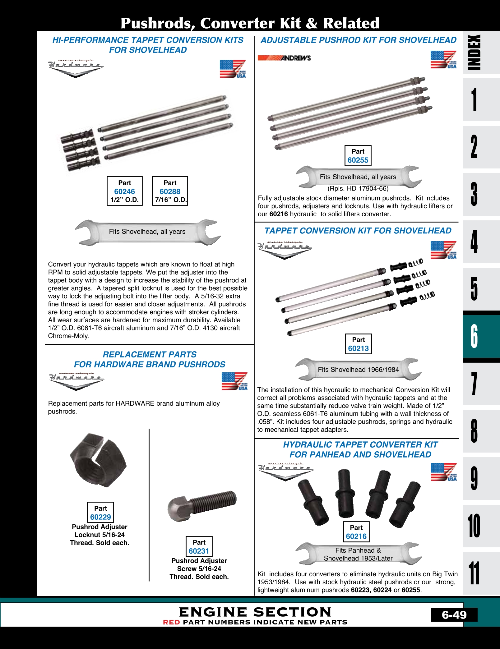 | MU-60246 | TAPPET CONV KIT,HI PERFORMANCE SHOVELHEAD 1/2"OD 6061-T6 AIR- CRAFT ALUM TUBING MFG 6600-R | KIT | 52.55 |