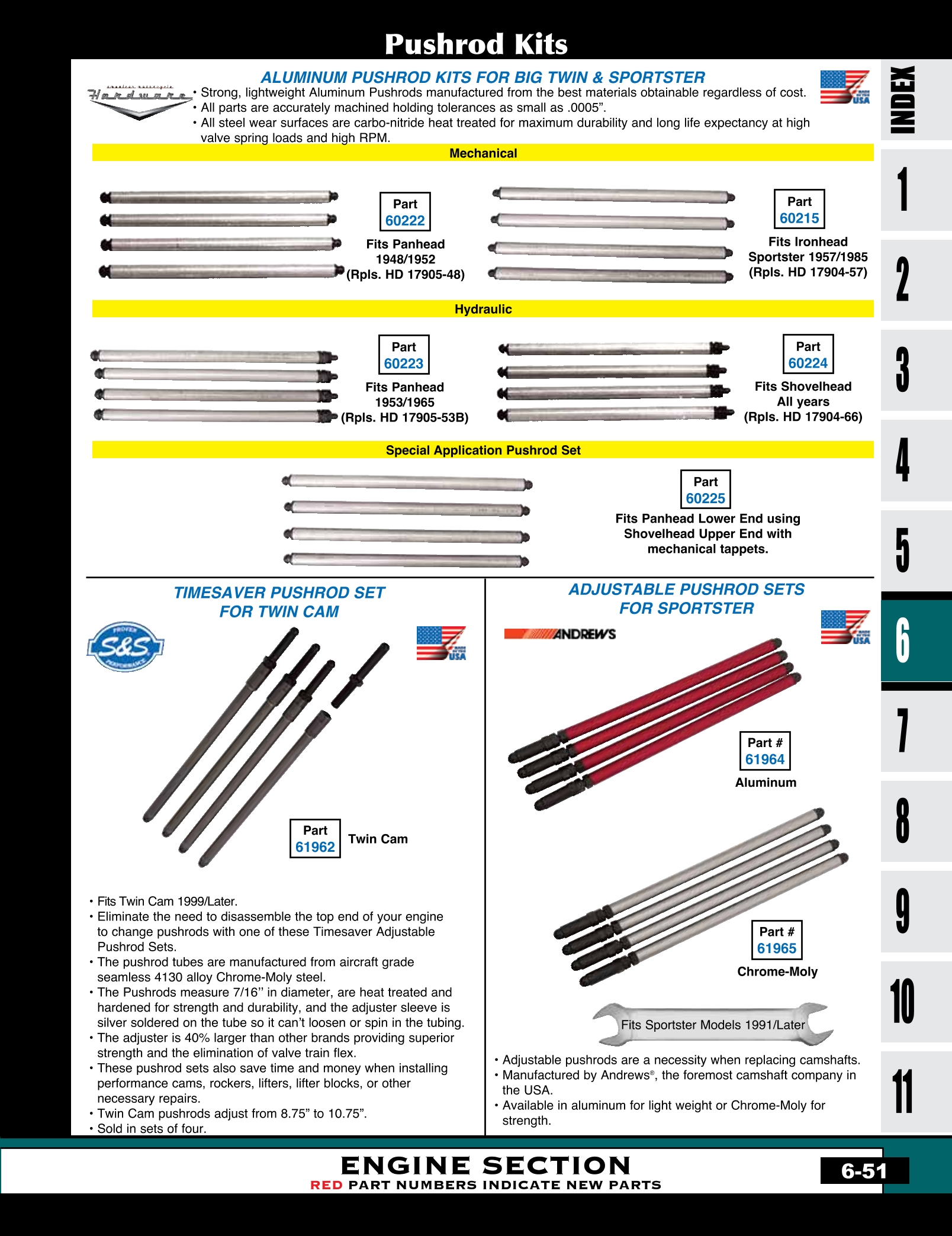 | MU-61962 | PUSHRODS,ENGINE TIME SAVER TWIN CAM 88 1999/LATER* ADJ 8.75 TO 10.75 930-0053 | SET | 180.95 |