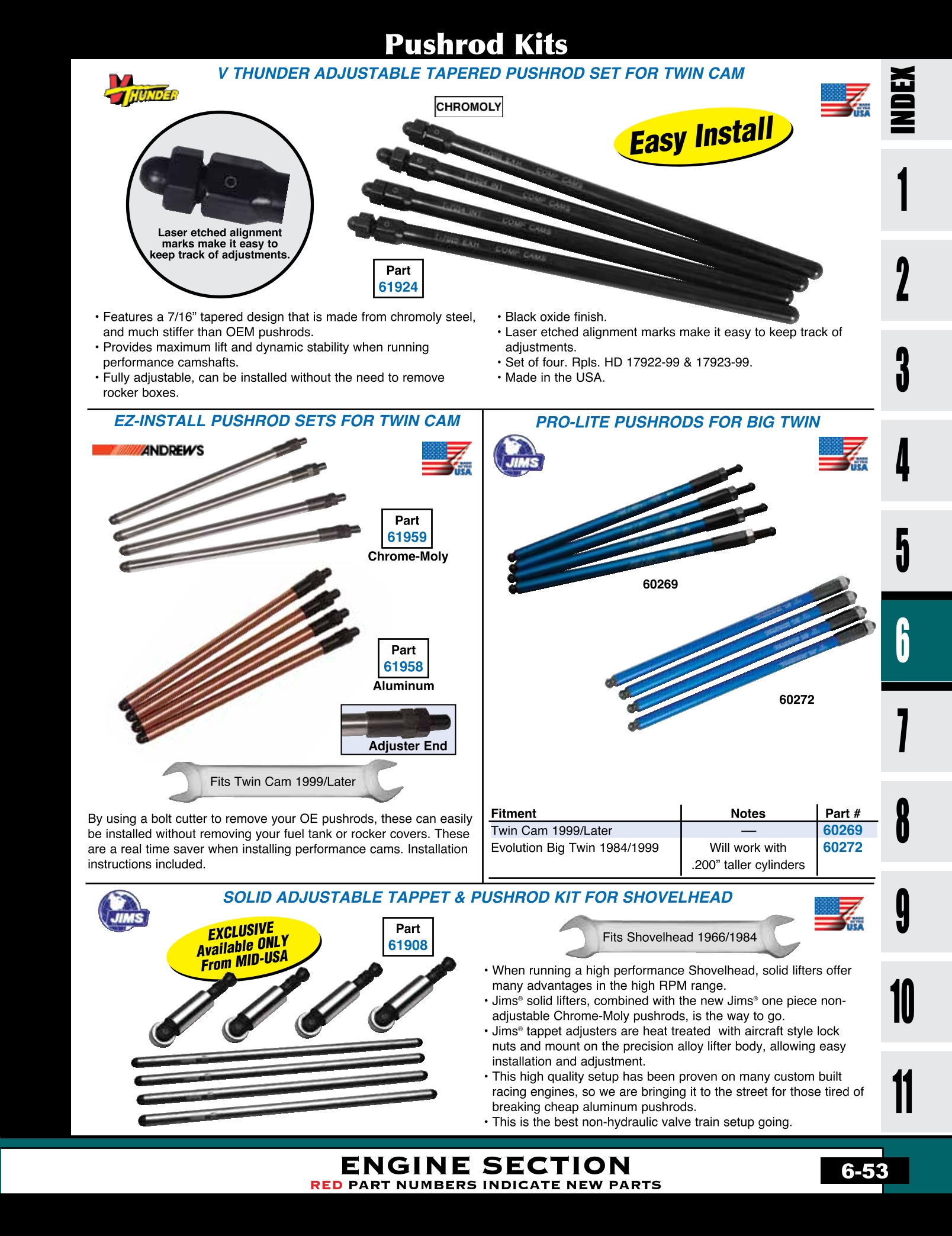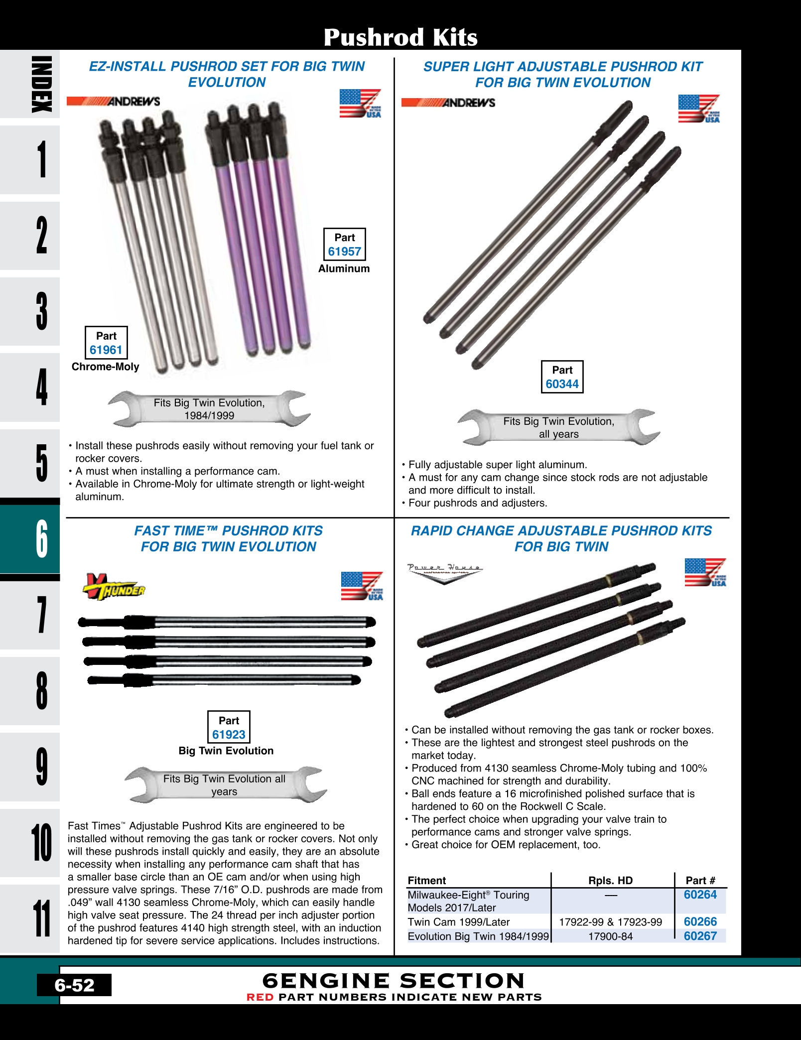 | MU-60266 | RAPID CHANGE PUSHROD KIT TWIN CAM 1999/LATER* 7/16" OD CHROME MOLY TUBING | KIT | 166.50 |