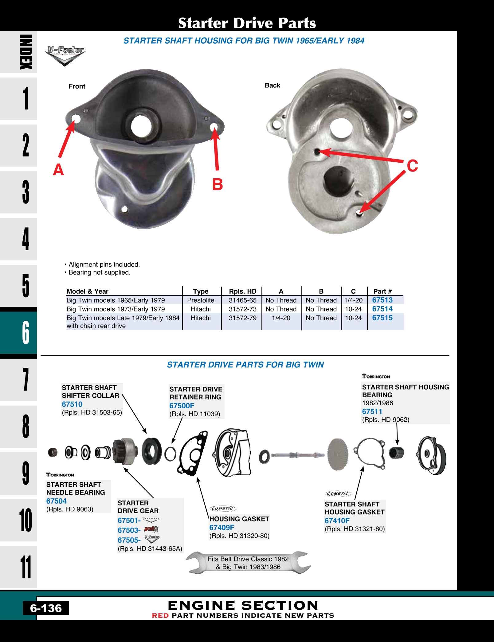 | MU-67511 | STARTER SHAFT HOUSING BEARING BIG TWIN 65/88 SPT 67/80 RPLS HD #9062.....TORRINGTON M-8101 | EACH | 14.05 |
