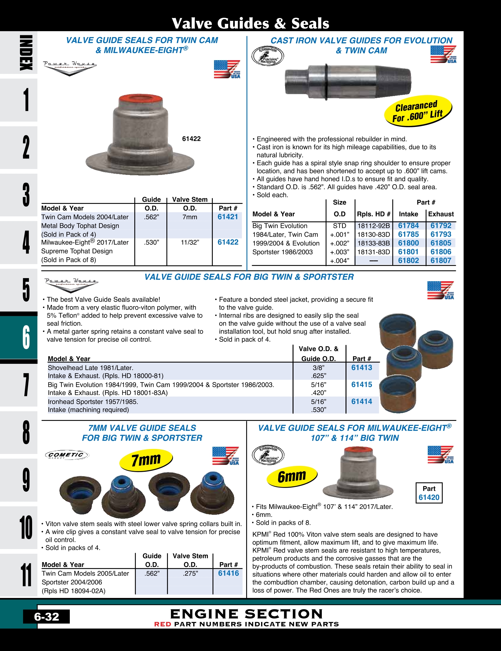 | MU-61413 | VITON VALVE GUIDE SEALS SH L81/L,80CI,3/8"ID X.625"OD RPLS HD 18000-81 VS403V | PK4 | 5.85 |