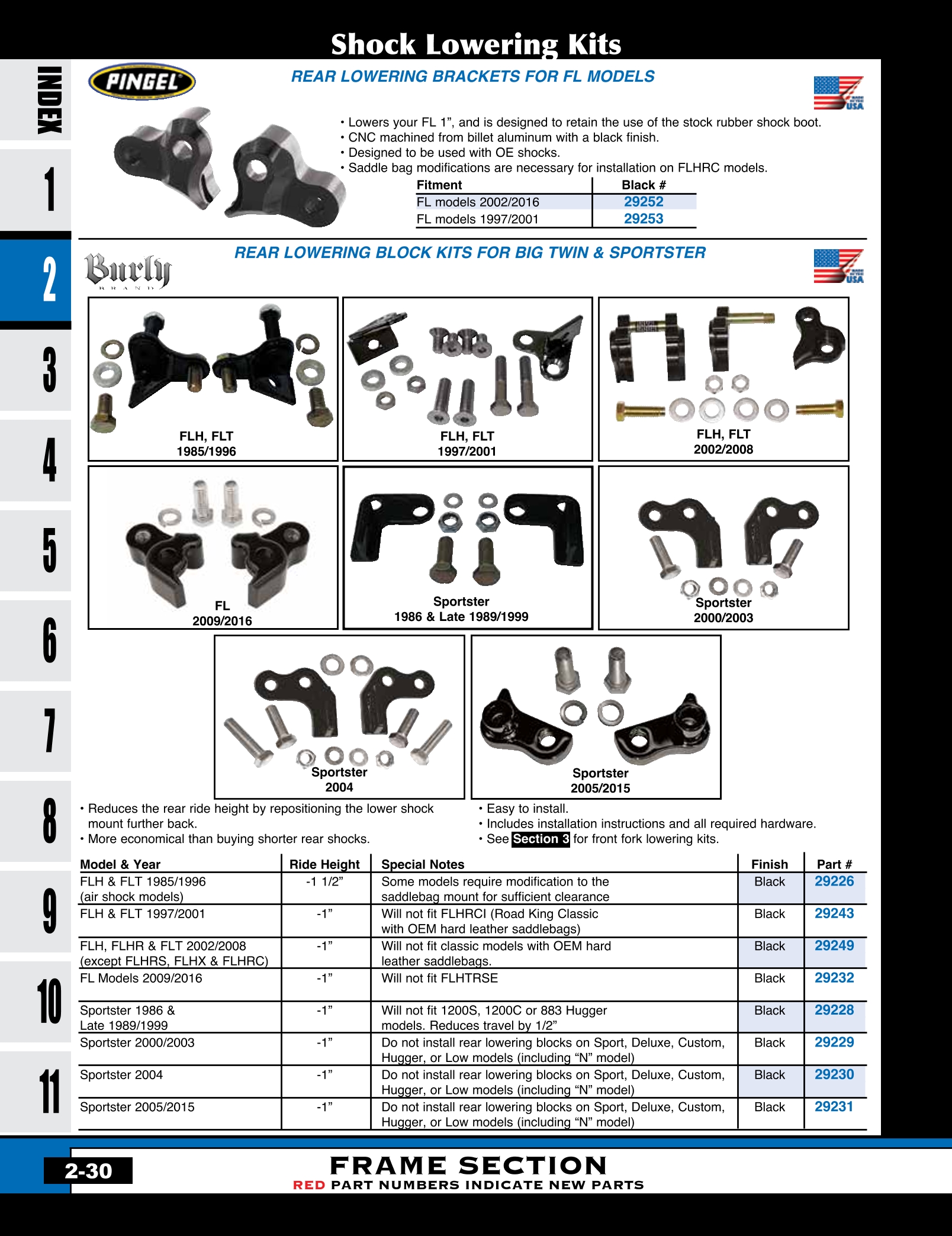 | MU-29232 | REAR LOWERING BLOCK KIT,BLACK FITS FL MODELS 2009-2016 1" LOWER, BURLY B28-42008 | KIT | 129.16 |