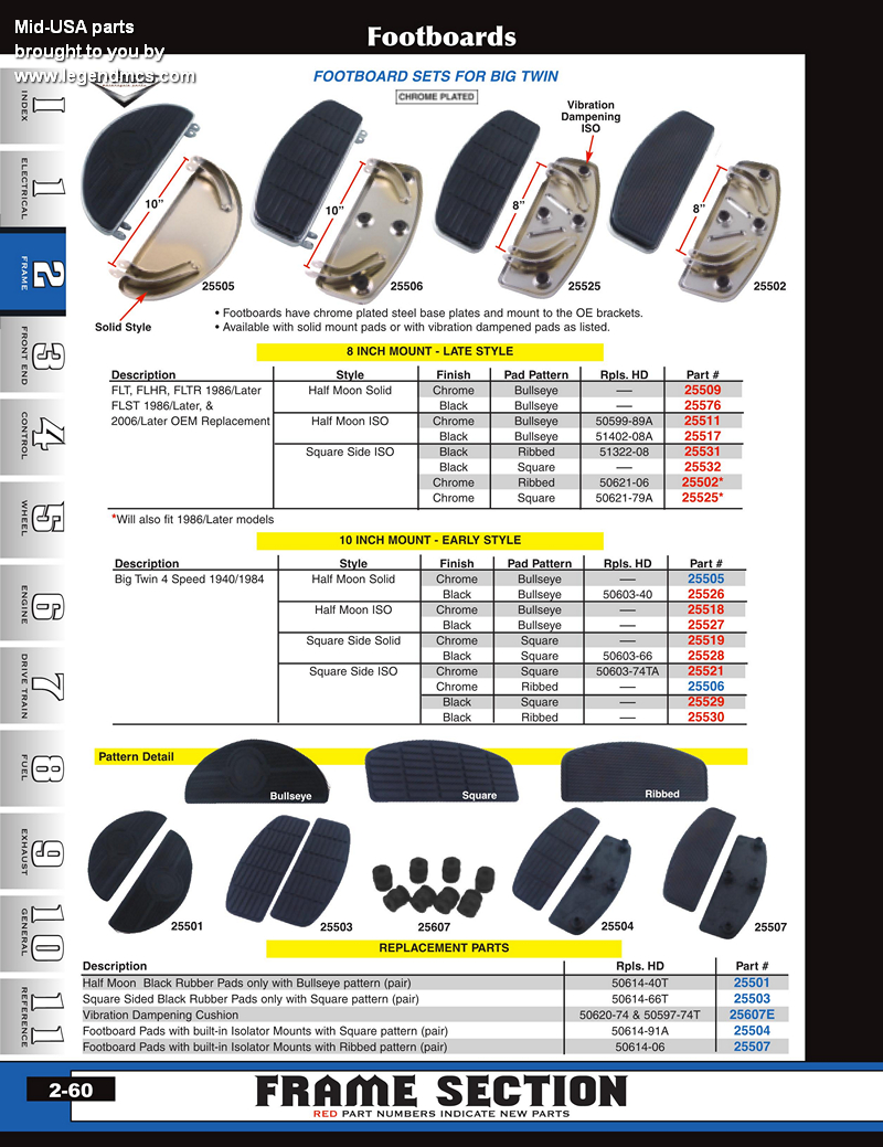 | MU-25503 | FOOTBOARD PART,LATE STYLE PADS FL MODELS 1966/1990 & CUSTOM LATE STYLE RPLS HD 50614-66T | 7.50 | 6.68 |