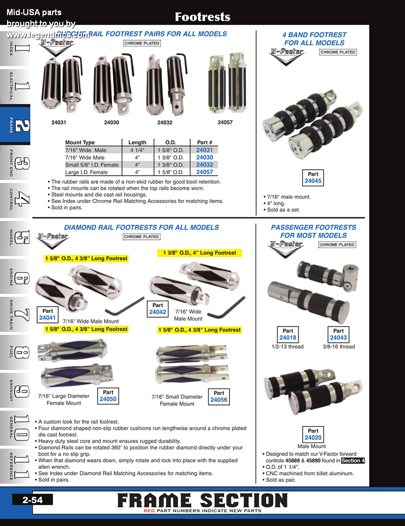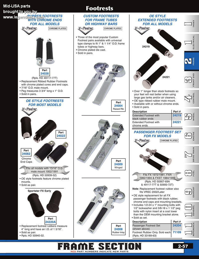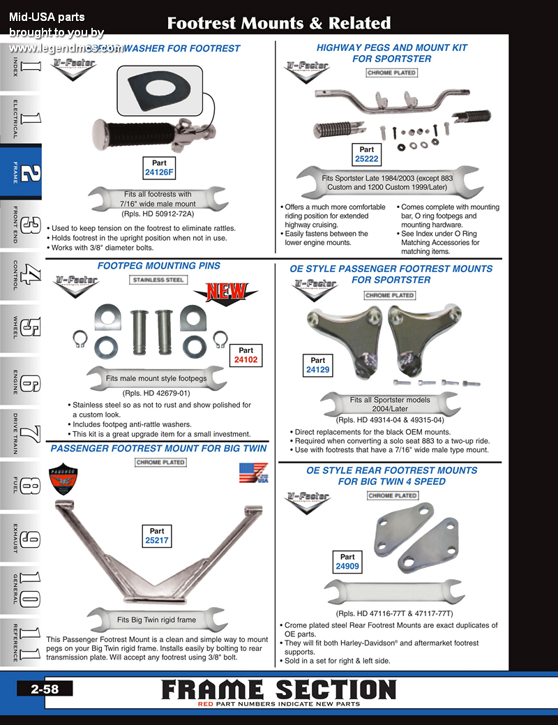 | MU-24022 | FOOTRESTS,STOCK STYLE LRG OD ALL MODELS 52/91 LARGE FEMALE MOUNT REPLACES HD 50939-52 | 19.60 | 16.46 |