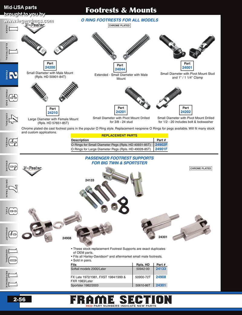 | MU-24200 | FOOTRESTS,O RING SMALL OD MALE MOUNT FOR ALL MODELS REPLACES HD 50901-84T..CHROMED | 24.25 | 20.91 |