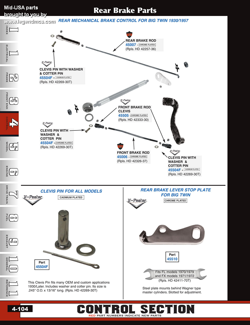 | MU-45505 | FRONT BRAKE ROD CLEVIS BIG TWIN 1930/1957 CHROME REPLACES HD 42333-30 | 8.05 | 7.16 |