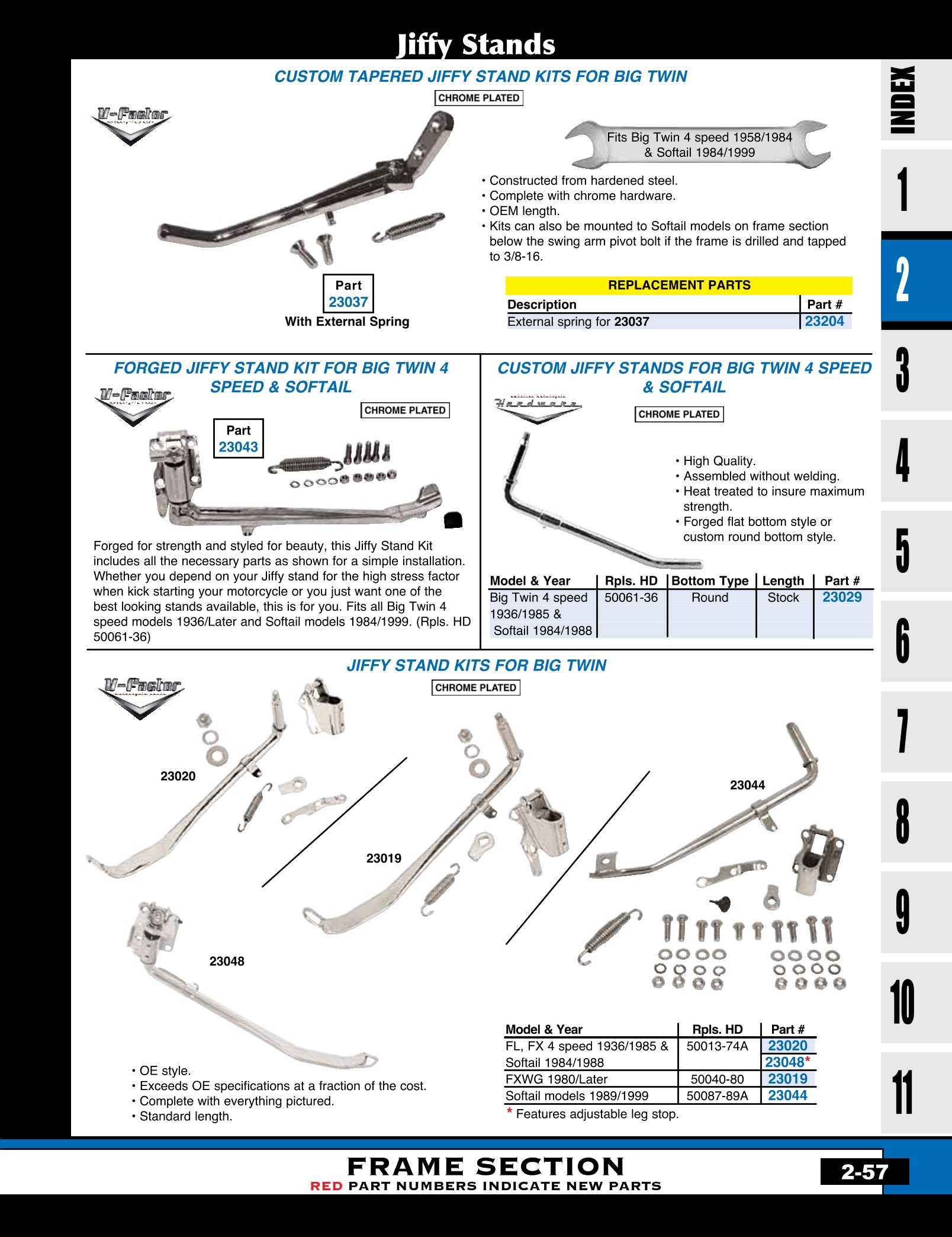 | MU-23037 | JIFFY STAND KIT,W/SPG & HRDW BT 1958/1984 SOFTAIL 1984/1999 TAPERED FOR CUSTOM LOOK | KIT | 93.40 |